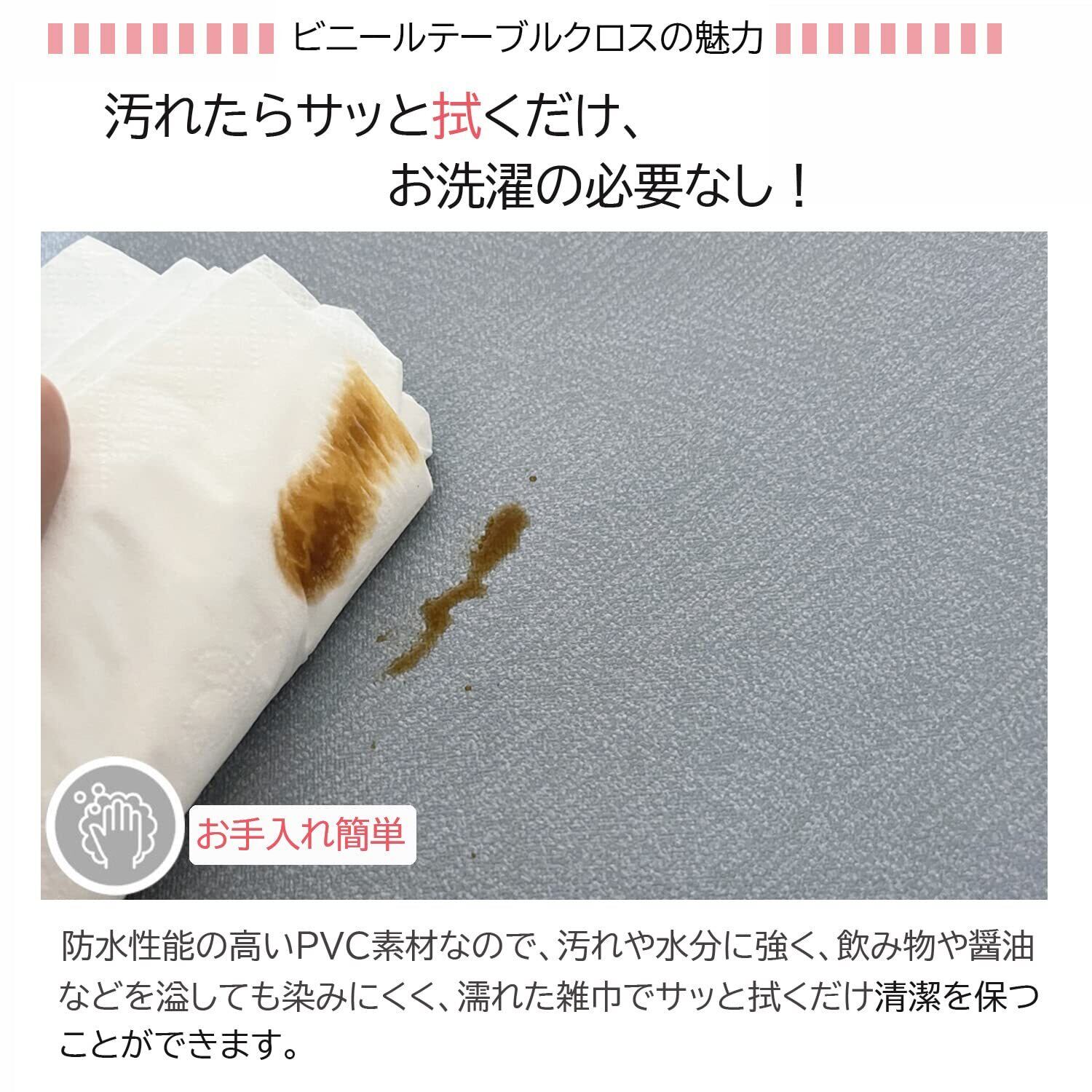 お手入れ簡単:防水防油防カビの機能付き、洗濯の必要がありません。汚れたら、雑巾で拭き取るだけで、お手入れ簡単です。いつでも食卓の清潔に保つことができます。