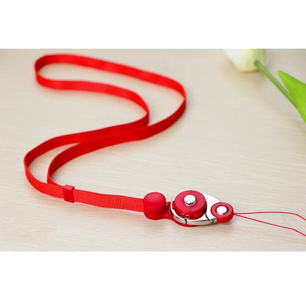 [サムコス] ネックストラップ 首掛け スマホ ストラップ 吊下げひも スマホ ショルダーストラップ 忘れ物防止 携帯ストラップ 脱着式 ブラック (レッド)