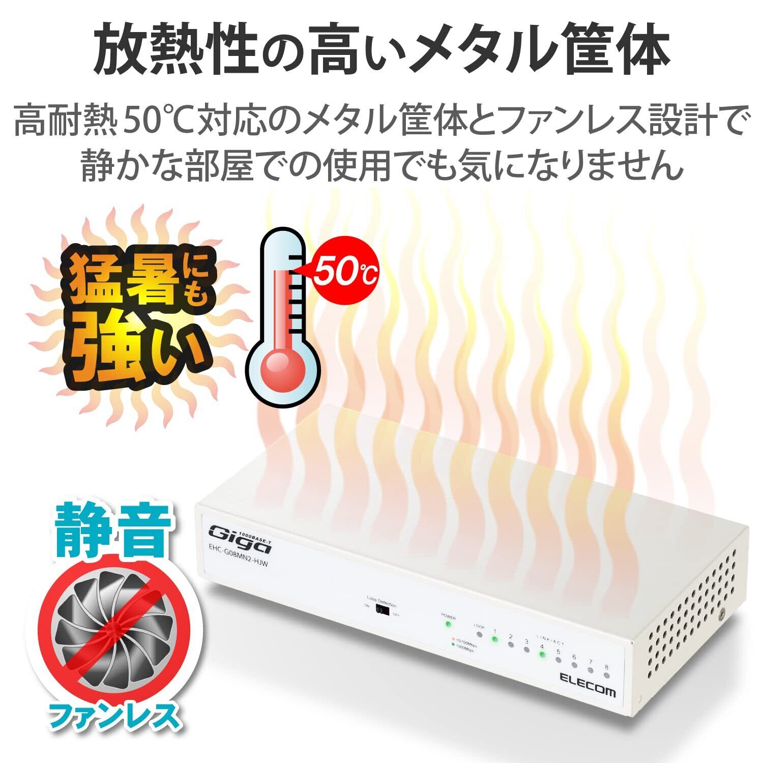 エレコム スイッチングハブ ギガビット 8ポート 金属筐体 マグネット付 電源内蔵 ホワイト EHC-G08MN2-HJW
