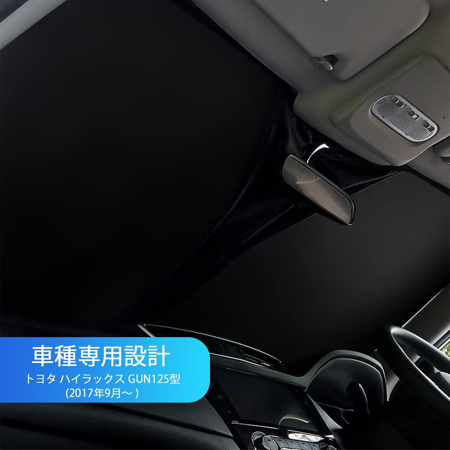 【適合車種】:トヨタ ハイラックス GUN125型(2017年9月~)。※購入する前、商品形状と車型を確認してください。【内容セット】:フロントガラス用遮光サンシェード x1PCS。収納袋付。