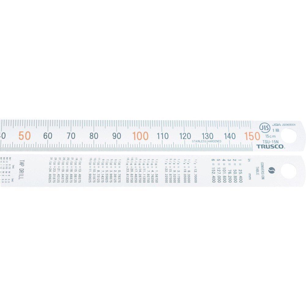 ●インチ換算表、ねじ下穴径表付●線引き・ケガキ作業・寸法測定。●ブラスト処理仕上げなので光の反射をおさえ、目盛りが見やすくなっています。●エッチング目盛のため消えにくいです。●インチ換算表、ねじ下穴径表付です。●JIS1級品です。 (TSU15N~TSU200N)
