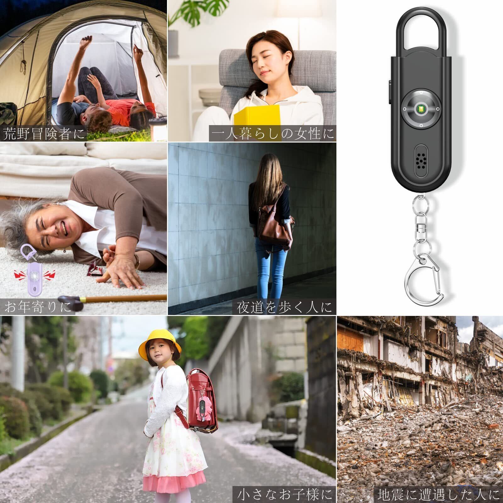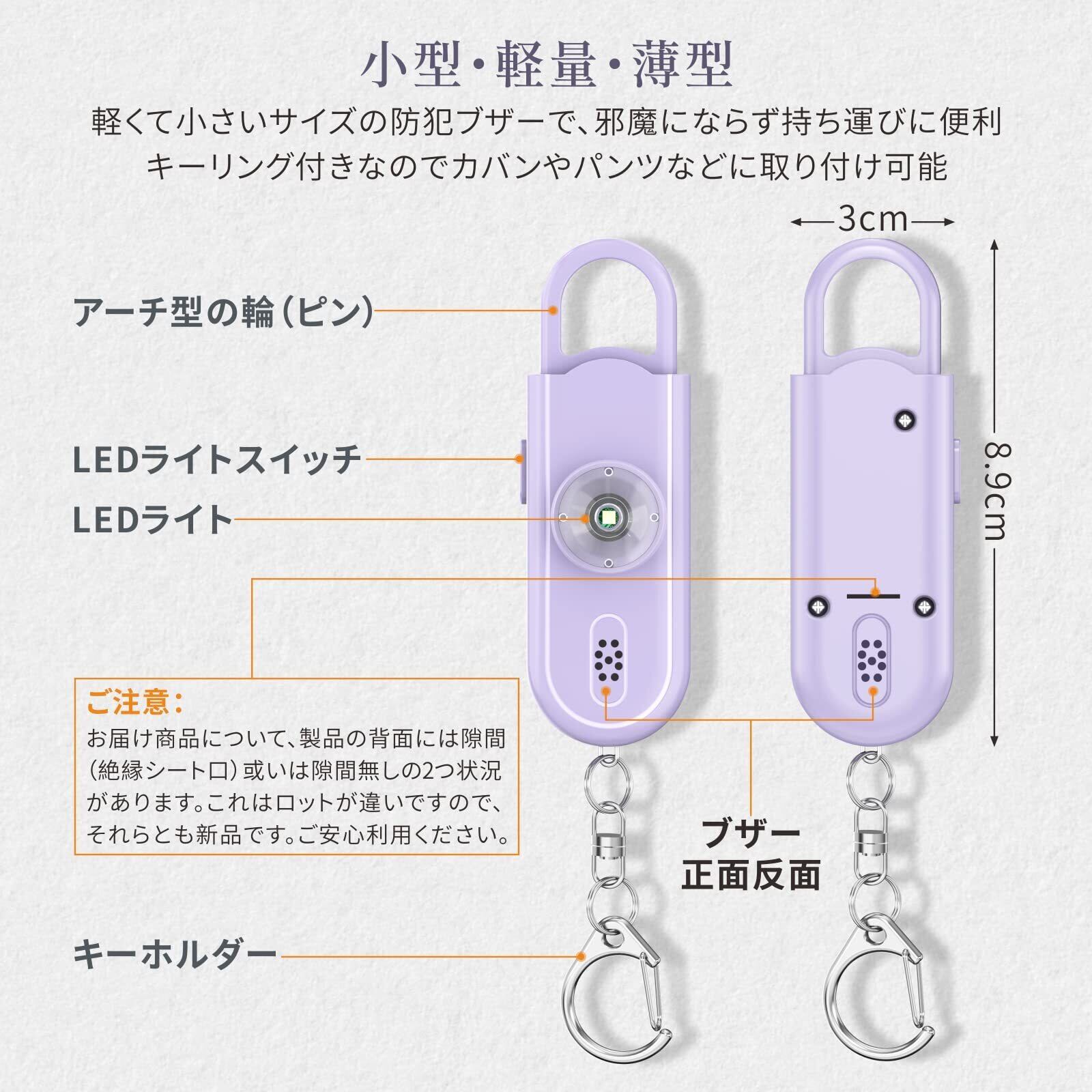 Topbasic 防犯ブザー 小学生 女性 防犯アラーム 防犯警報器 大音量130dB ランドセルに付ける LEDライト付き 子供 お年寄り 防犯ベル ブラック&紫