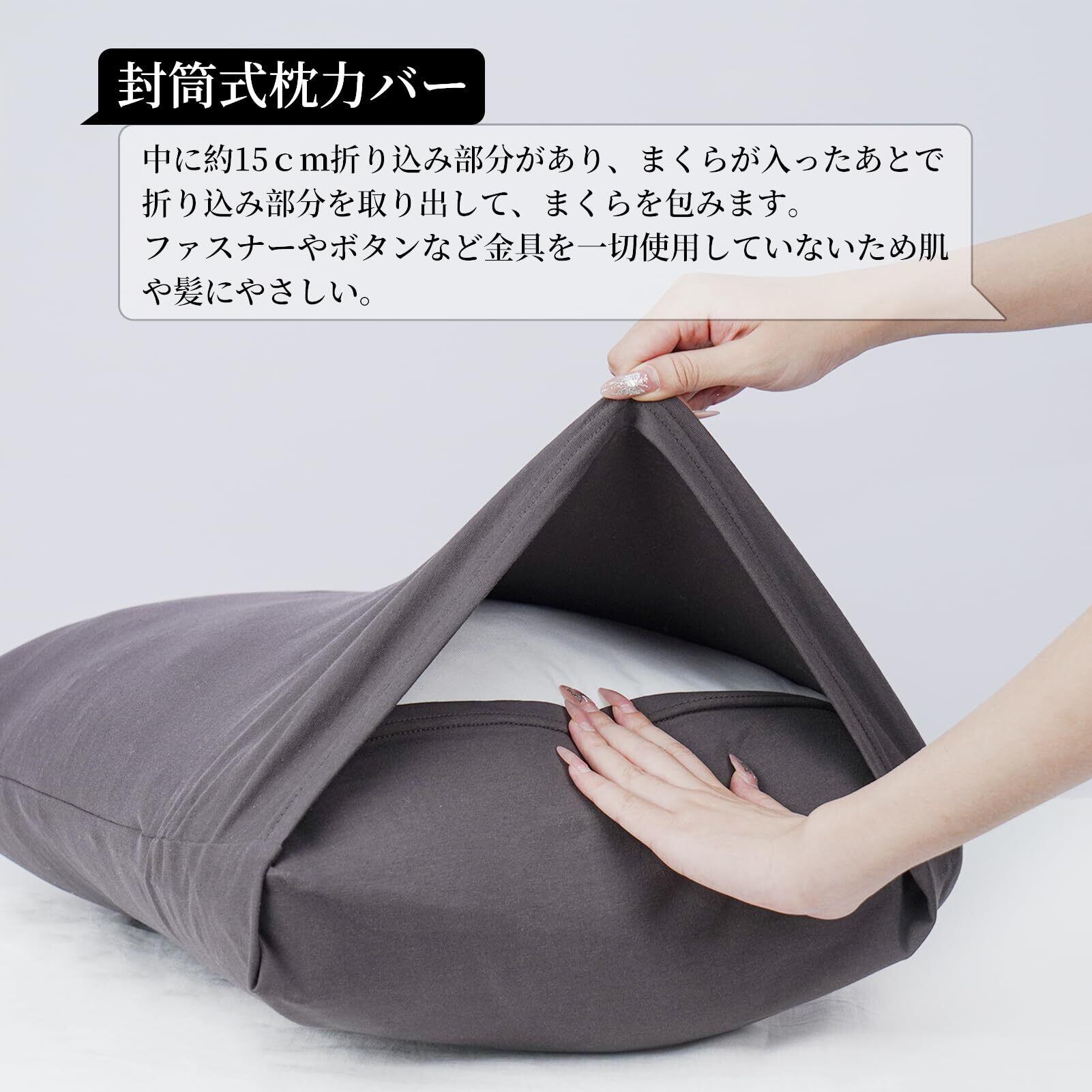 【封筒式・着脱簡単】シンプルな封筒枕カバーは、枕の内容物をしっかりと包み込み、上部にふくよかなイメージを醸し出し、ファスナーやその他の金具を使用せず、異物がなく、着脱が容易で、快適で良質な睡眠体験を与える。