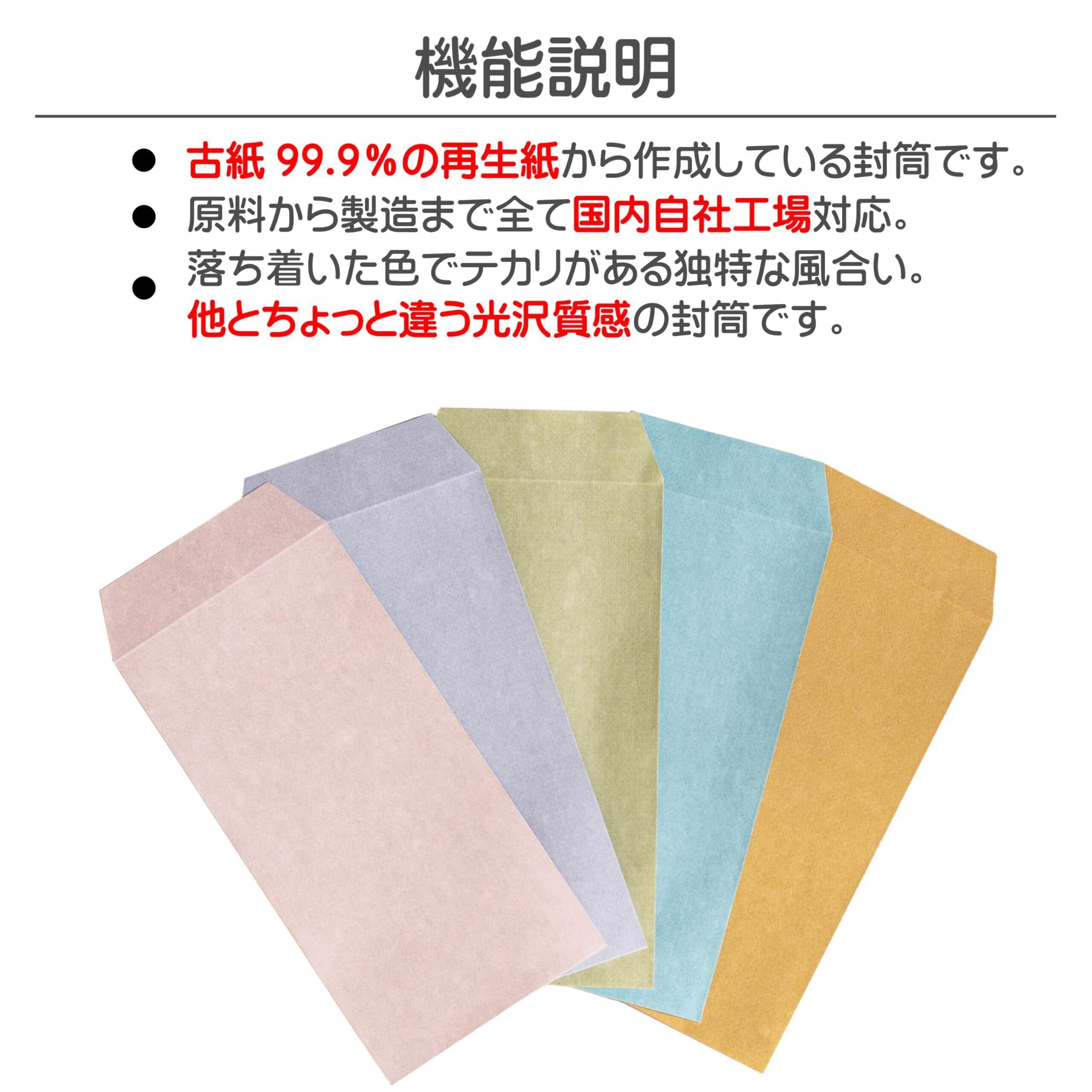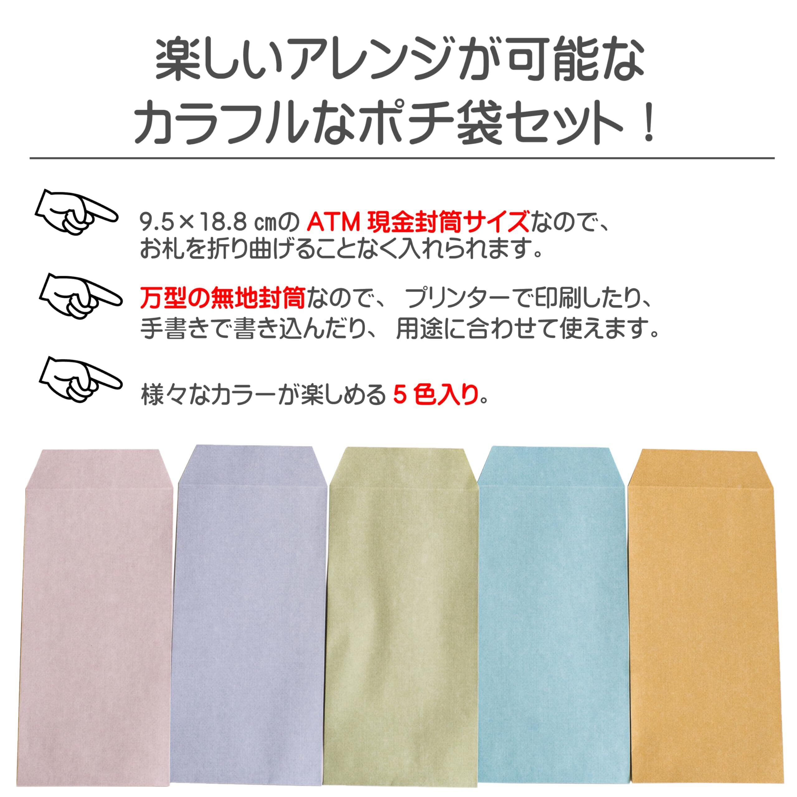カラフル ポチ袋 アソート5色 くすみカラー 50枚入り 9.5×18.8cm/ATM現金封筒サイズ/お札サイズ (アソート5色 50枚)