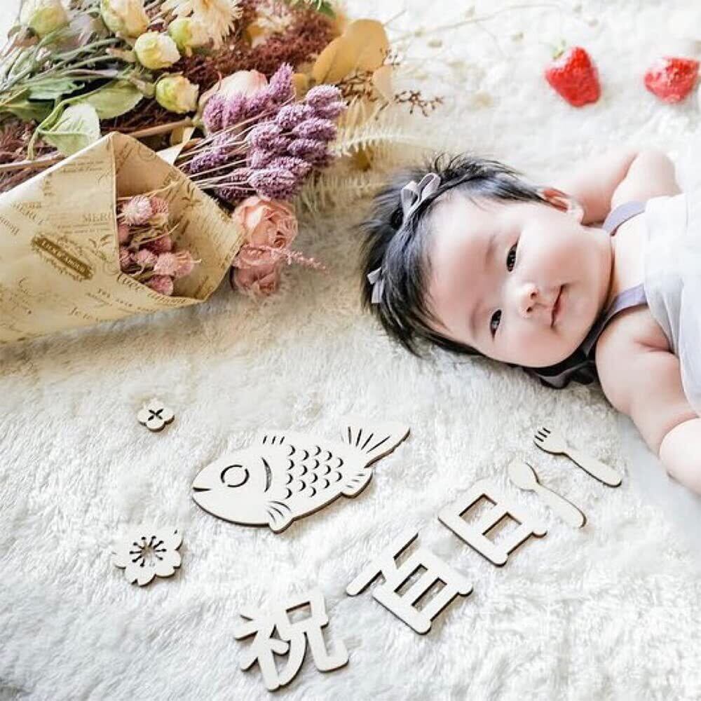 MEDUSHASHA 100日祝い 飾り 百日祝い 木製 レターバナー 赤ちゃん 飾り 天然 寝相アート 撮影 背景 小物 記念写真 出産祝い