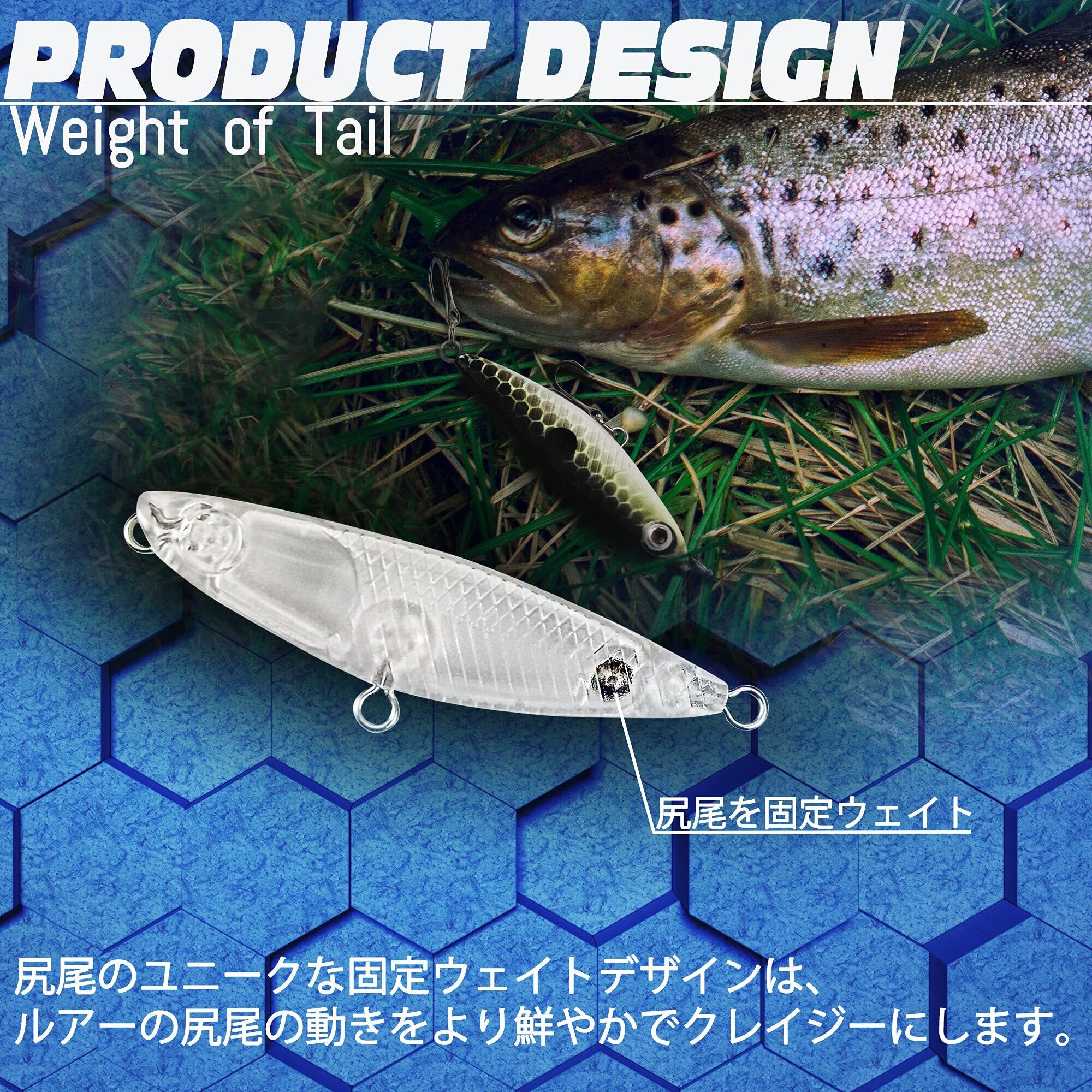 喰わせやすいボディーサイズ。横方向の誘いに対して反応が薄れたトラウトでさえも口を使う新ジャンルのトラウトルアーを、より遠く、より深くにまで届けたいという要望から誕生