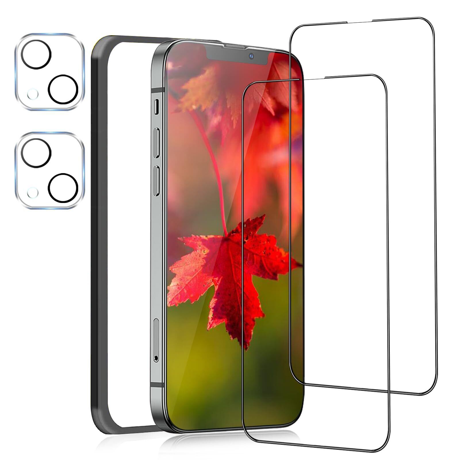 iPhone14 ガラスフィルム 【2+2枚セット】 iphone14 ガラス保護フィルム 全面保護 アイフォン14 フィルム ガイド枠付き いphone14 用 強化ガラス 液晶保護フィルム iPhone14 用 カメラフィルム
