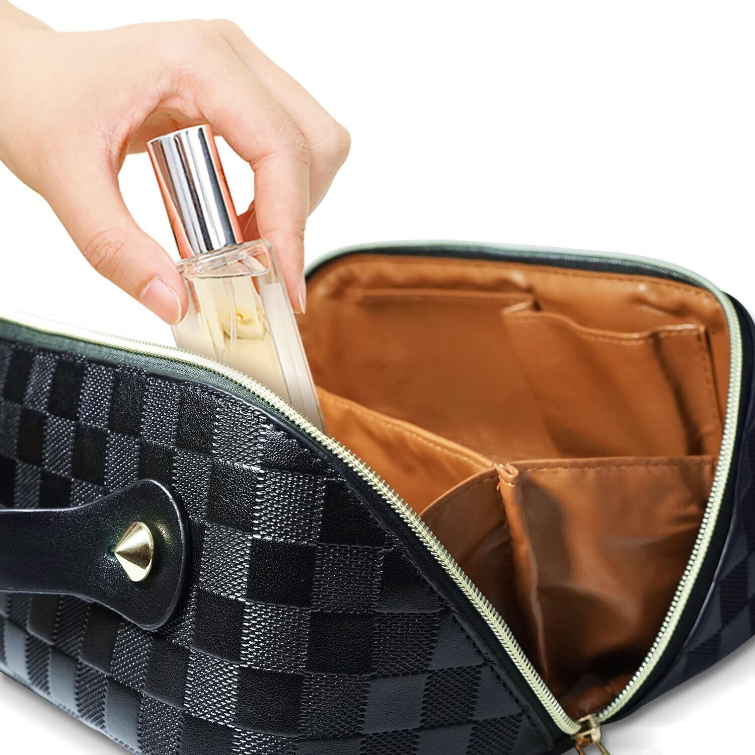 LAhair 化粧ポーチ 小物入れ ポーチ コスメポーチ メイクボックス トラベルポーチ 大容量 チェッカー レディース バッグ ポータブル シンプル おしゃれ 軽量 撥水加工 多機能 持ち運び 防水 仕切り付き トラベル 旅行 出張 軽量 黑