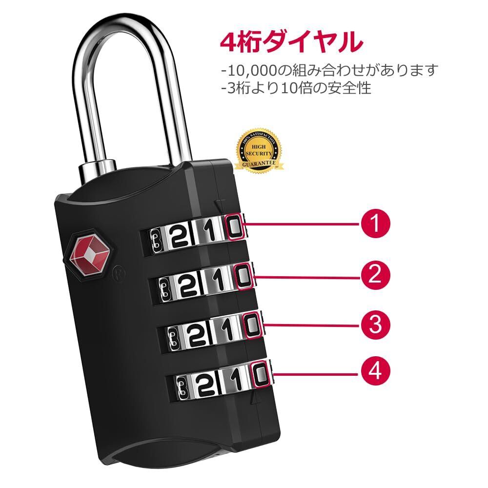 ZHEGE TSAロック 4桁ダイヤル式 南京錠 2個セット 暗証番号 海外旅行用鍵 ロッカー、荷物、バッグ用ロック 日本語説明書