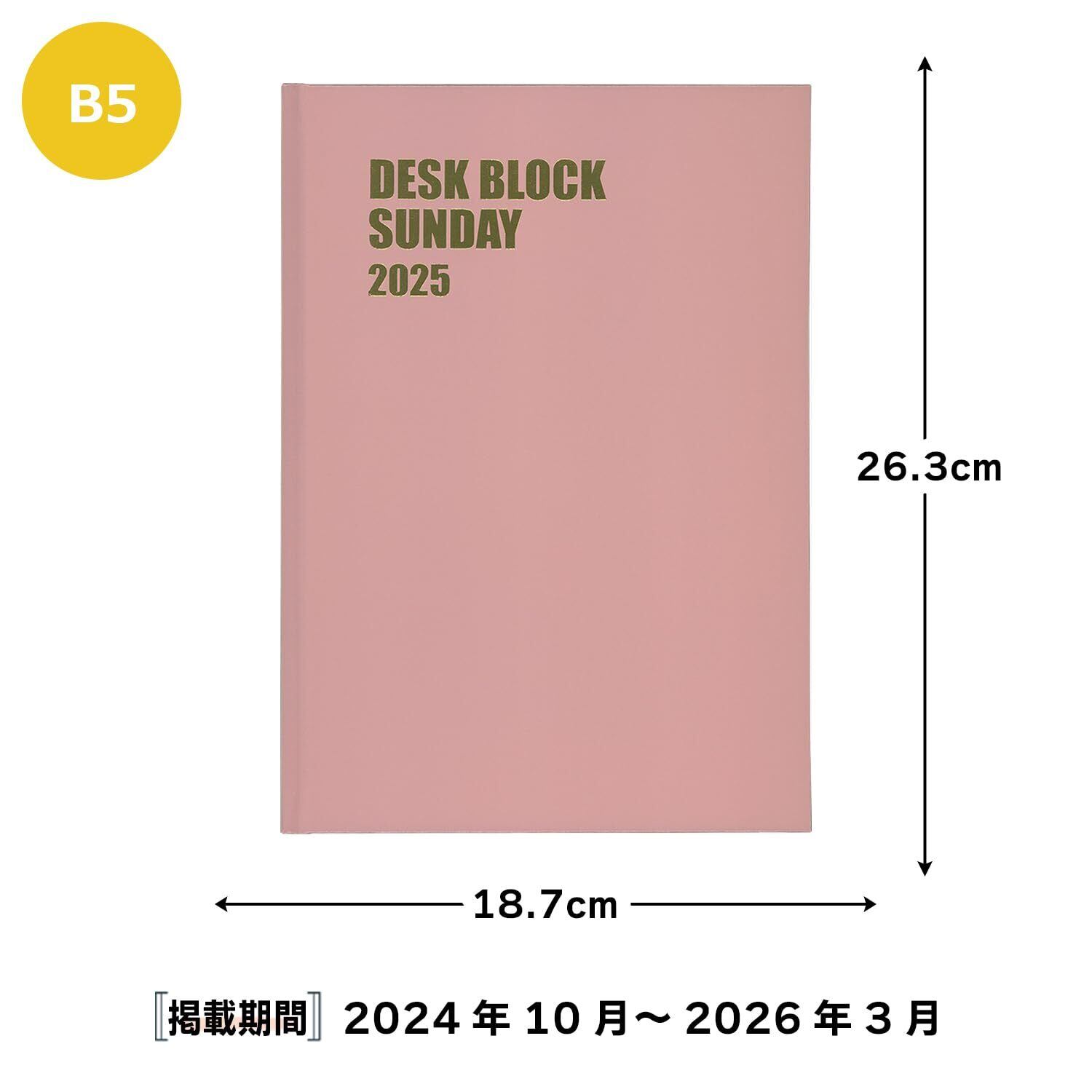 博文館 手帳 2025年 B5 マンスリー デスクブロック サンデー 18ヵ月 ピンク No.219 (2024年 10月始まり)