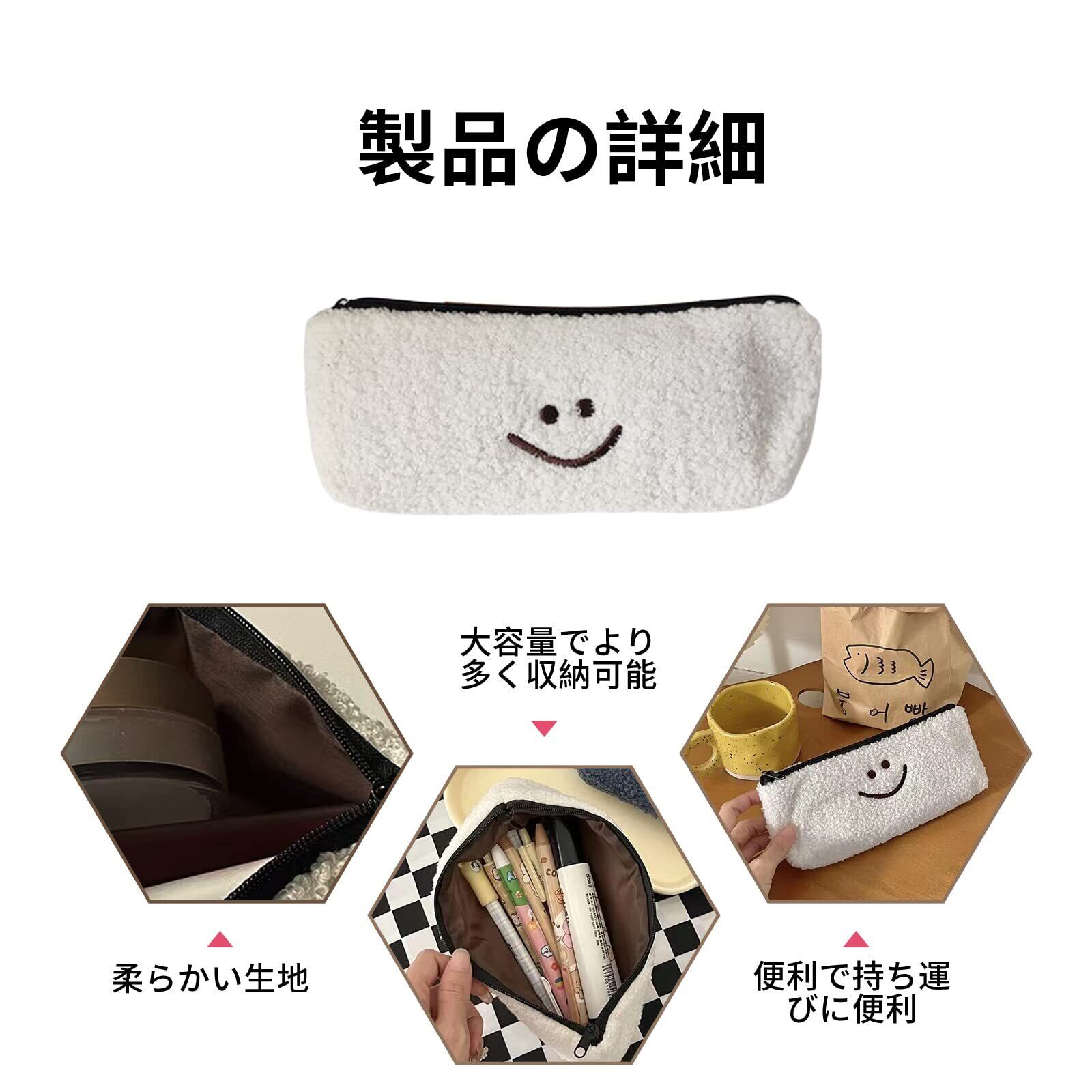 nalaina 筆箱 ふでばこ筆箱 ぬいぐるみ ペンケース ジップーペンケース おしゃれ 可愛い 韓国 人気 多機能 収納袋 文房具 化粧品入れ 社会人用 軽量 オフィス用品 白