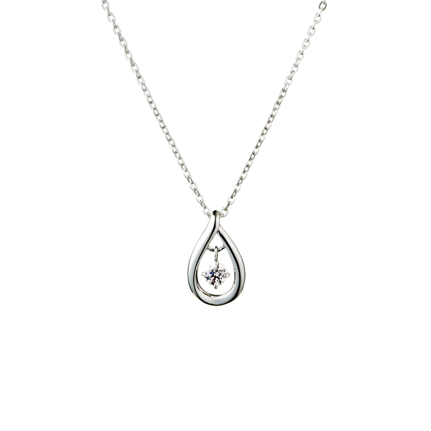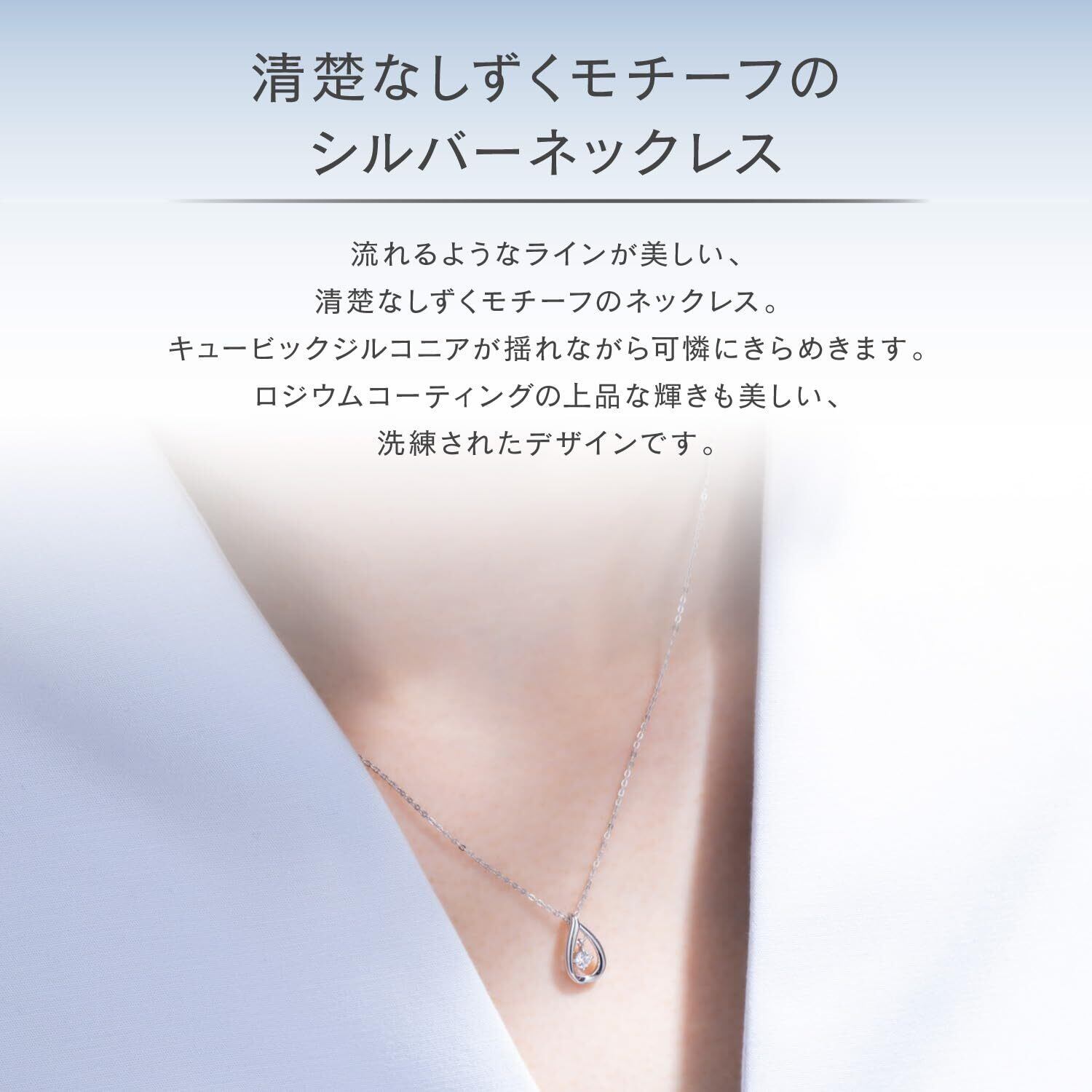 流れるようなラインが美しい、清楚なしずくモチーフのネックレス。キュービックジルコニアが揺れながら可憐にきらめきます。ロジウムコーティングの上品な輝きも美しい、洗練されたデザインです。