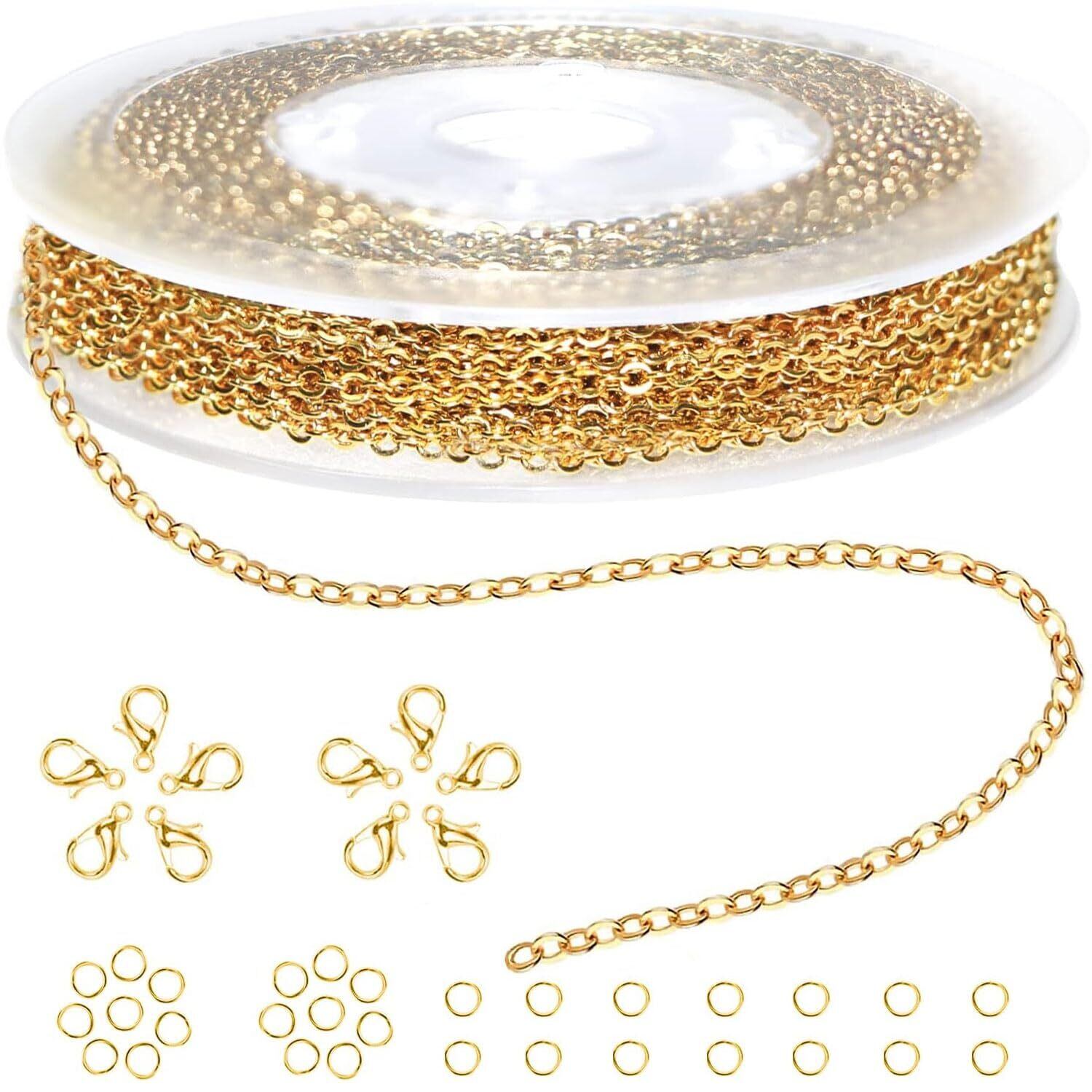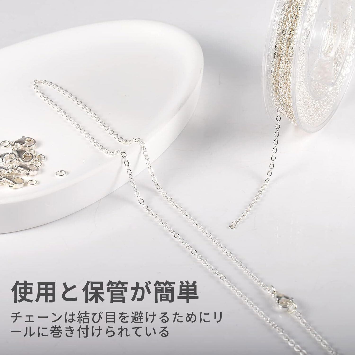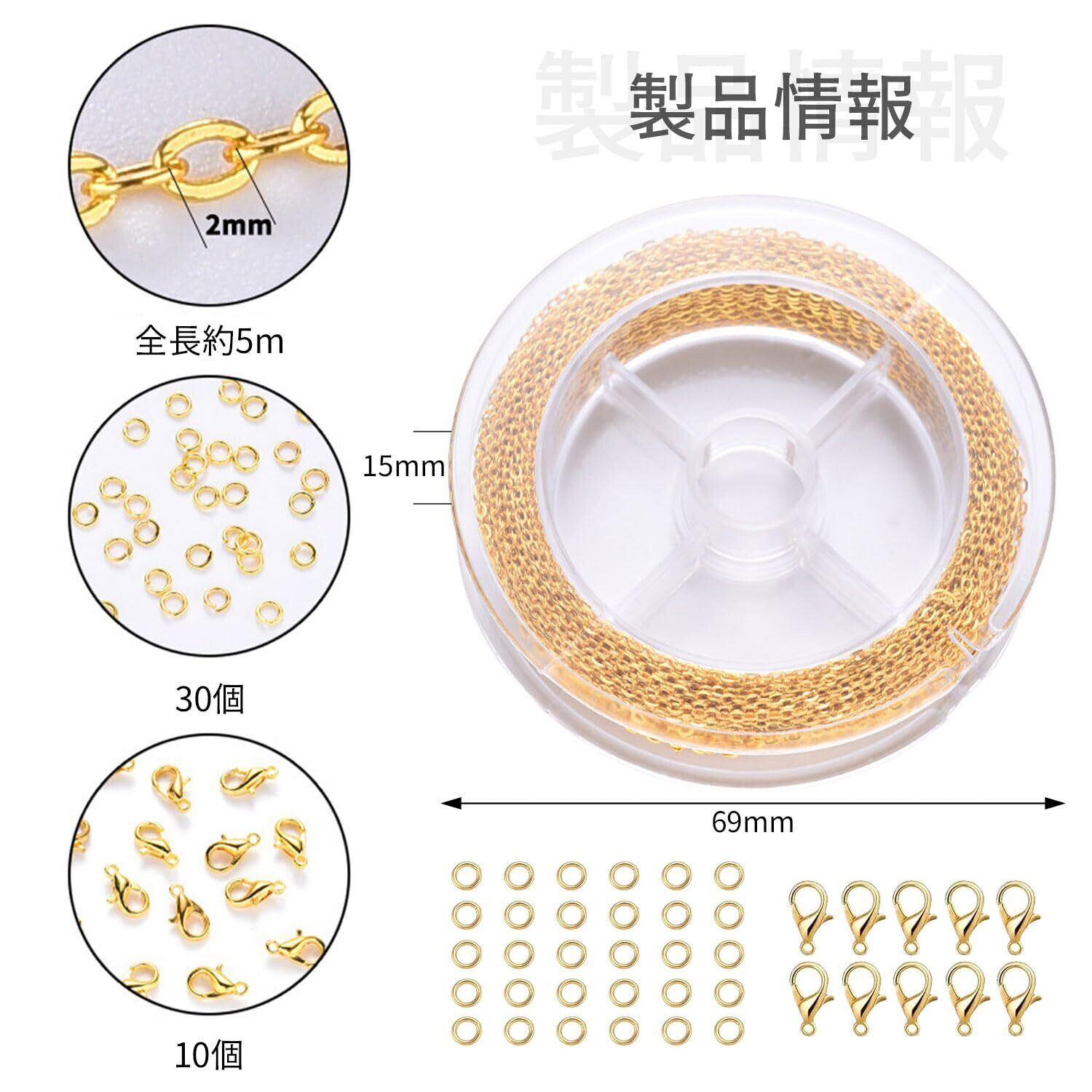 【スーツ内容】アクセサリー用チェーンx1巻、長さ約5m、幅約1.5mm、ロブスタークラスプx10個、ジャンプリングx30個。