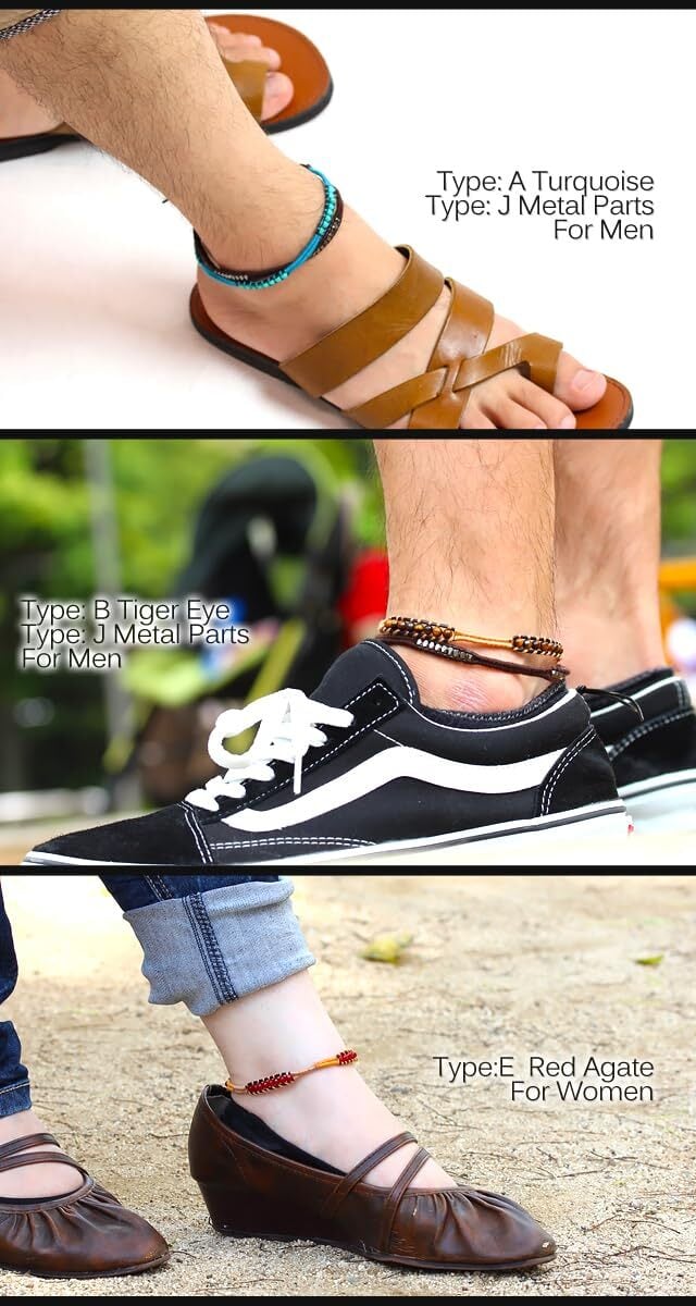 素材: アゲート/ターコイズ/水晶/タイガーアイ/オニキス/ハウライト/メタルパーツ/牛紐 足首長さ:最小23cm~(4段階アジャスタ)最長33cmほどの足首まで可能 手作りにより多少の長さが異なる場合が御座います。