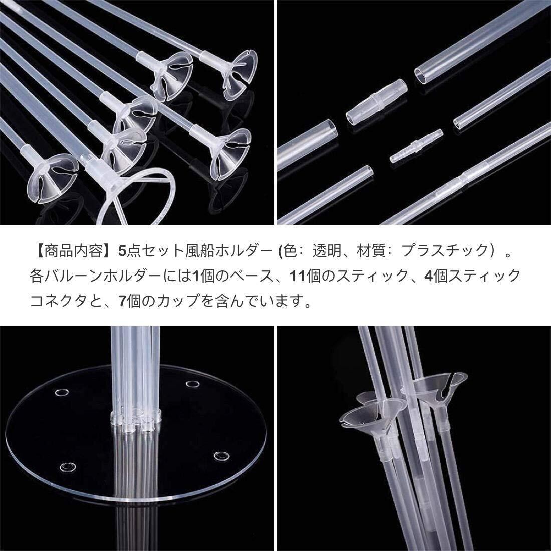 【商品内容】5点セット風船ホルダー (色:透明、材質:プラスチック)。各バルーンホルダーには1個のベース、11個のスティック、4個スティックコネクタと、7個のカップを含んでいます。