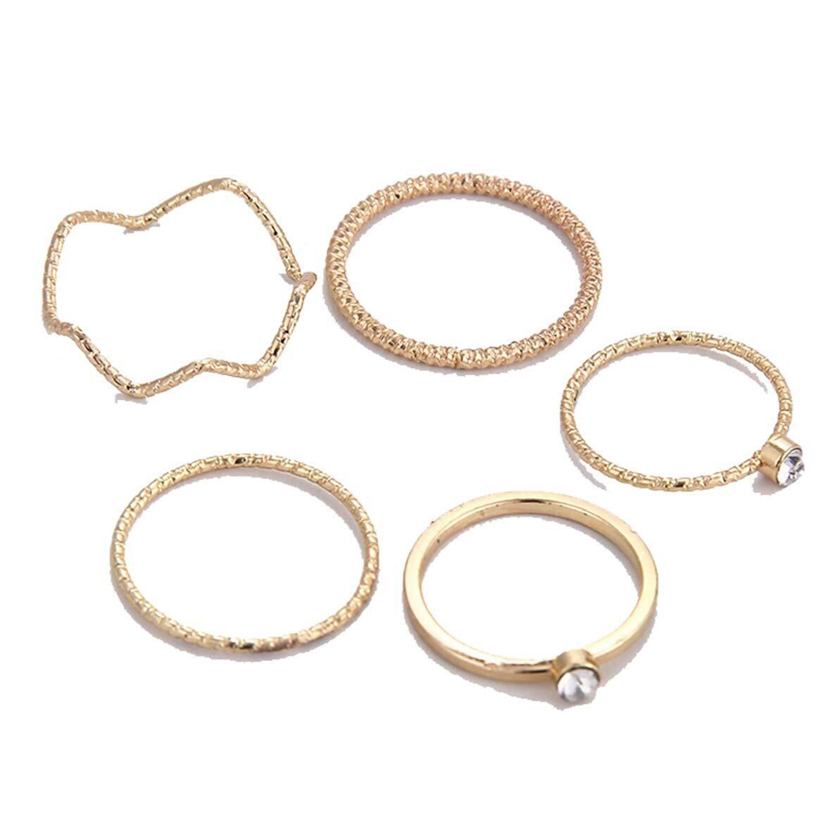 ALOHAMONI (アロハモニ) 5点セット 装飾 リング ゴールド ファランジリング ミディリング ピンキーリング 関節リング ストーン付き 5つ ファランジ ミディ ピンキー リング 指輪 細身 上品 キレイ (ゴールド)