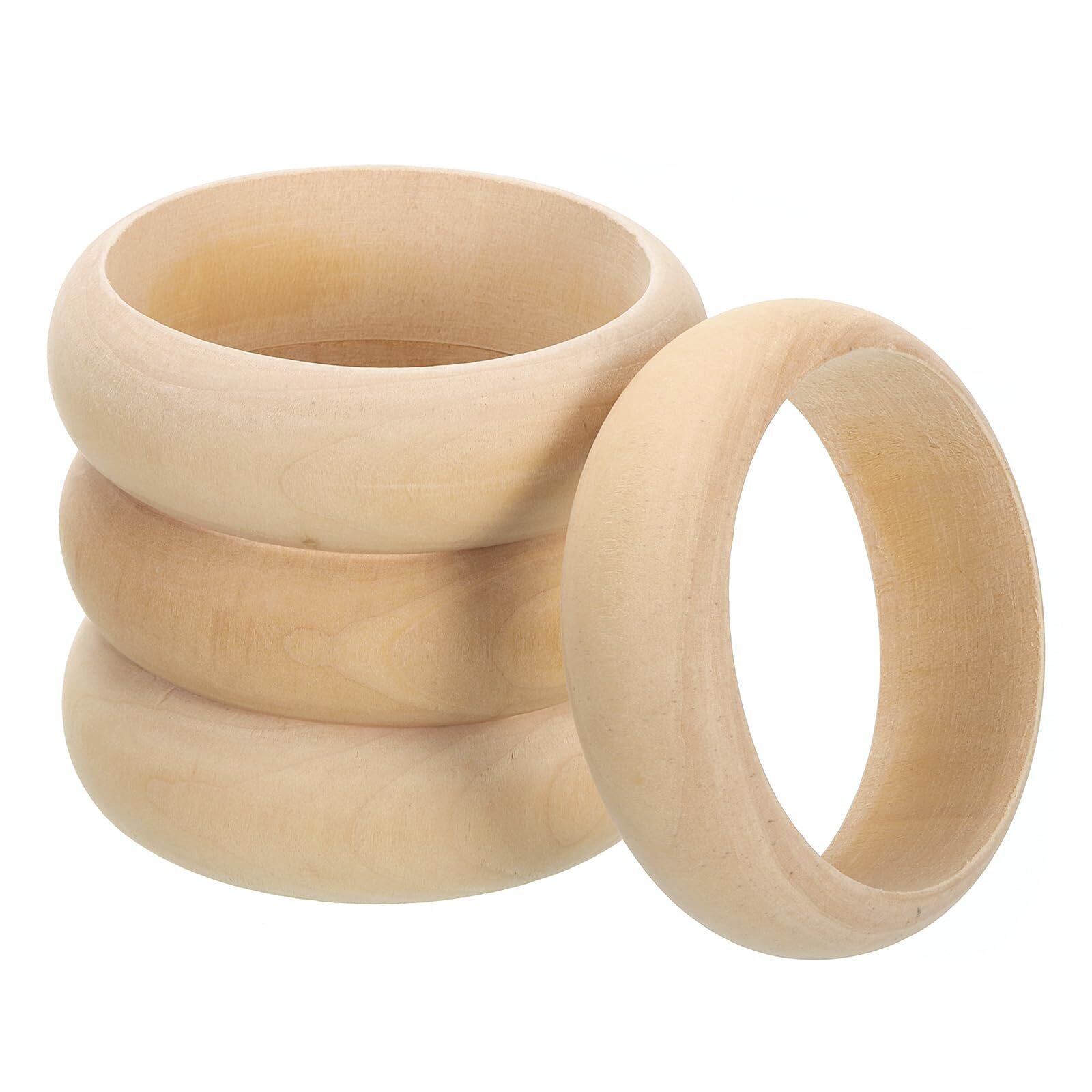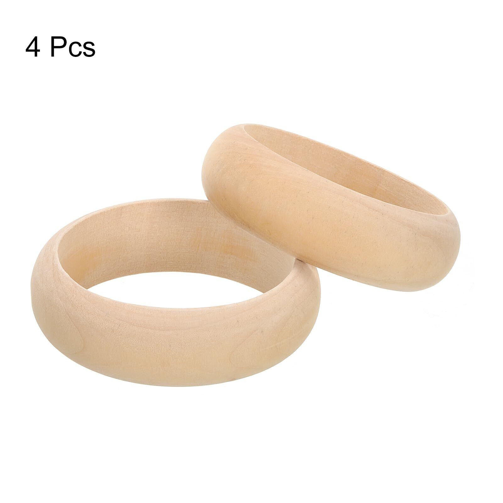 uxcell 木製バングルブレスレット 4個セット 85mm - ログレトロマクラメリング 未仕上げの滑らかな木製サークル クラフト ジュエリー DIY作成 ホームデコレーション用
