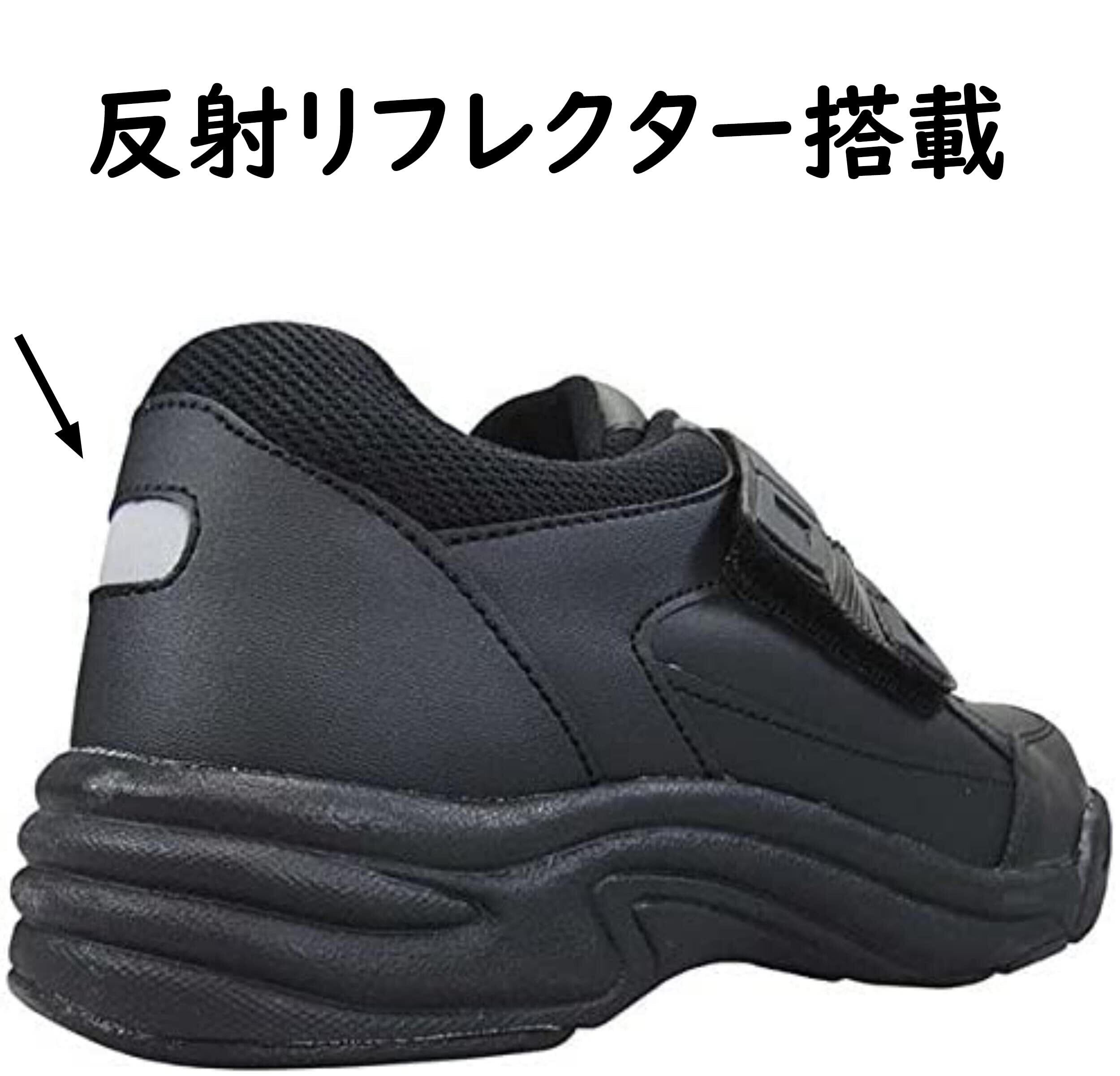 靴幅: 4E、表地: フェイクレザー 仕様1:中敷き裏のU字型のカップインソール衝撃吸収材により、歩行時の横ブレも防止。 仕様2:かかとに反射材付き。視認性が上がり 夜間 歩行も安全。
