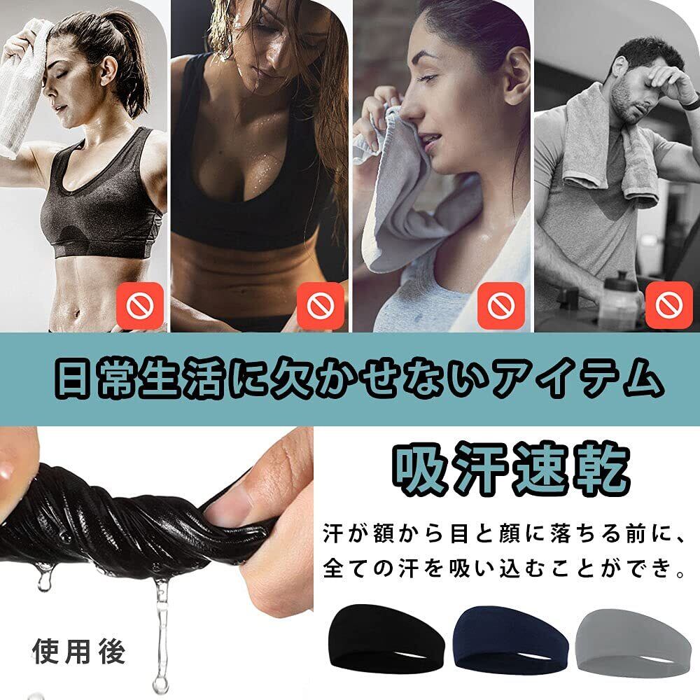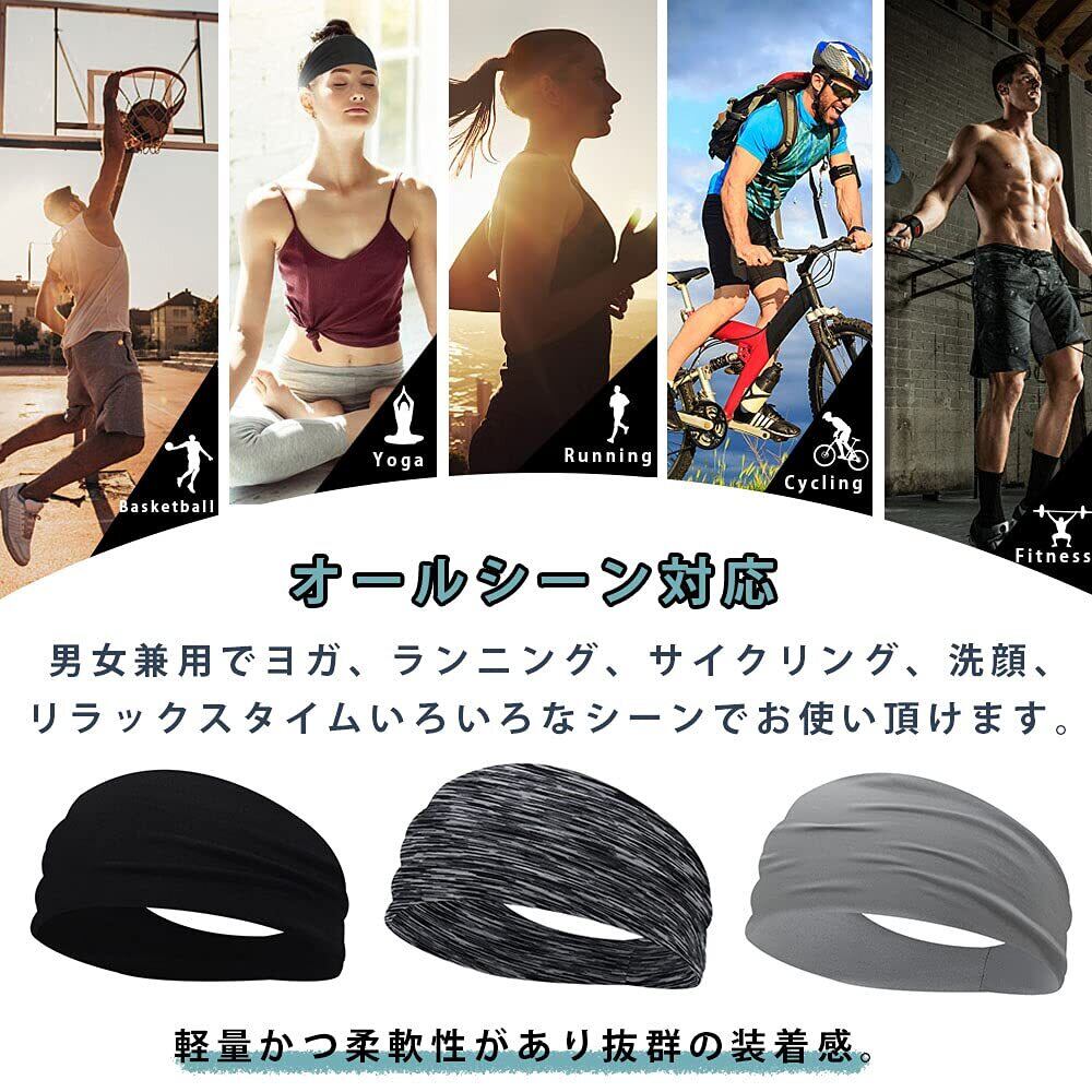 ヘッドバンド 汗止め ヘアバンド スポーツターバン メンズ 伸縮性 通気性 薄型 軽量 吸汗速乾 抗菌防臭 洗顔用 髪留めらかい ランニング・ダンス・ヨガ・ジョギング・自転車 男女兼用 3本セット