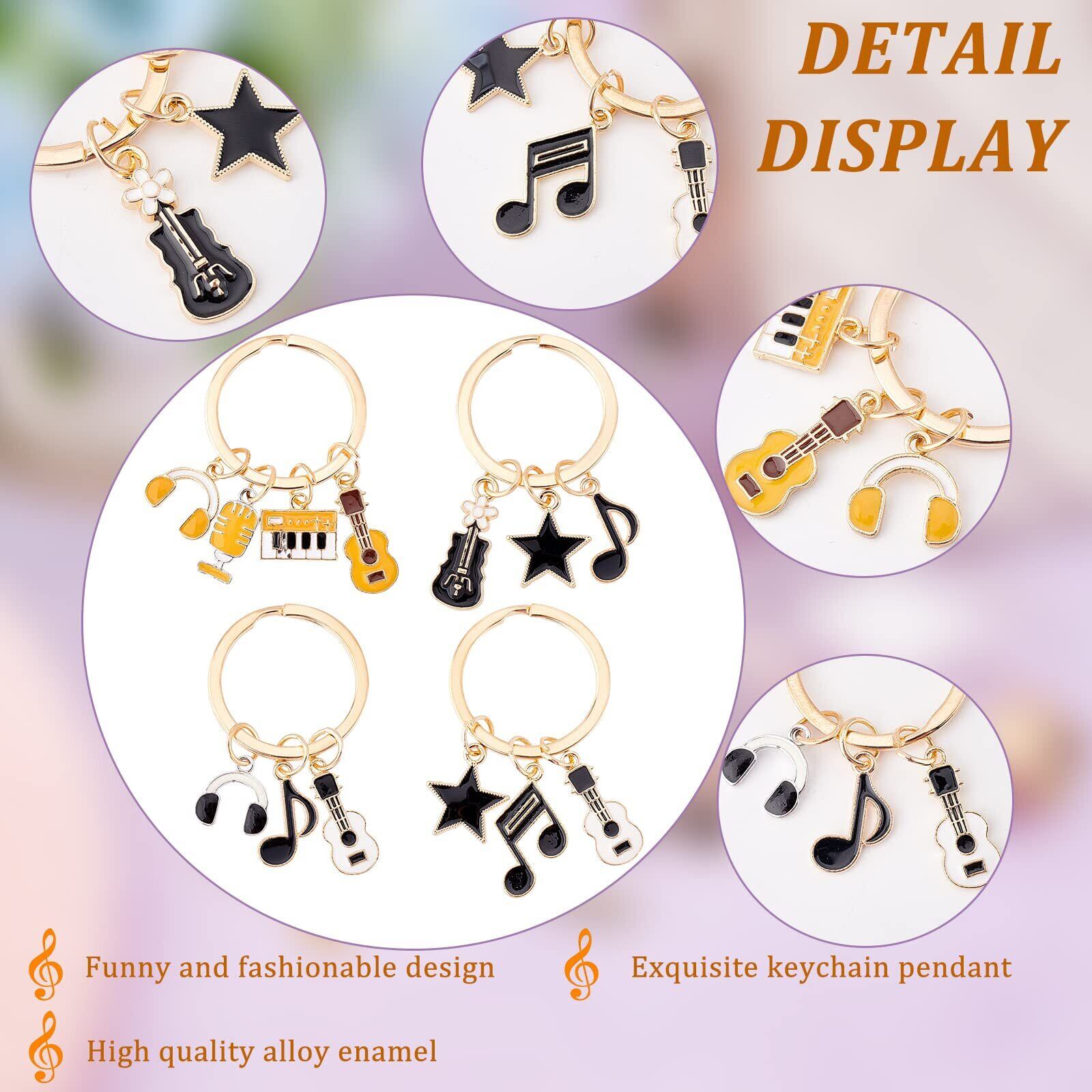 [OLYCRAFT] 4点 キーホルダー 星&音符&ギター キーホルダーチェーン 4種類 合金&エナメル チャームキーホルダー バッグチャーム キーリング レディース 工芸品 DIY バッグ飾り アクセサリーパーツ