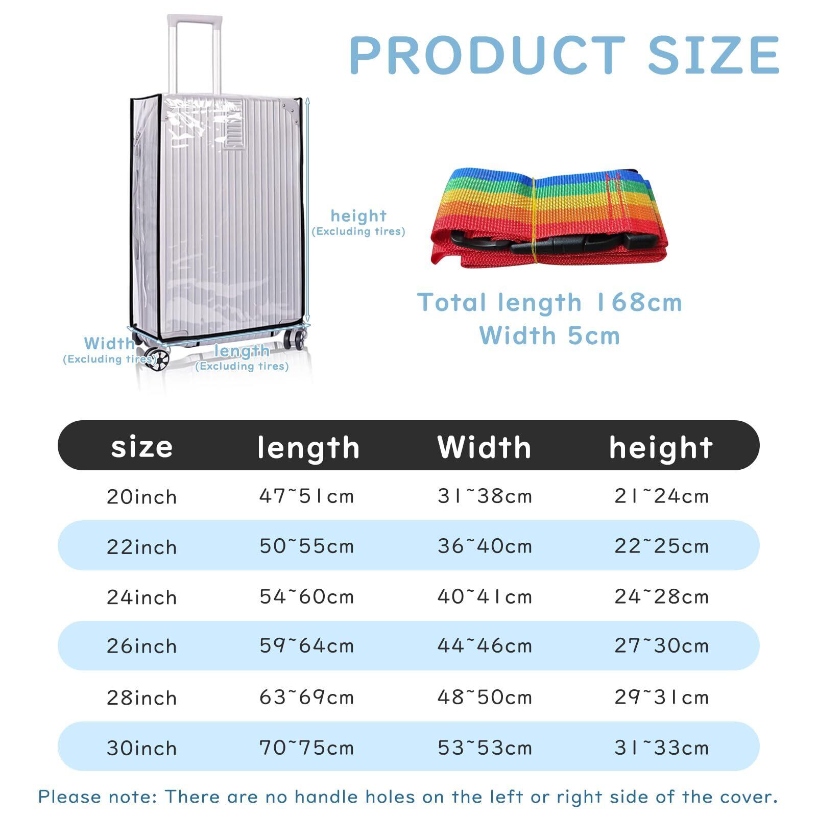 【仕様】スーツケース カバー1枚 スーツケースベルト1附,メイン素材:PCV,スーツケース カバーカラー:透明、スーツケースベルト: カラフル ,サイズ:長さ2メートル、幅5cm 長さ調節可能。