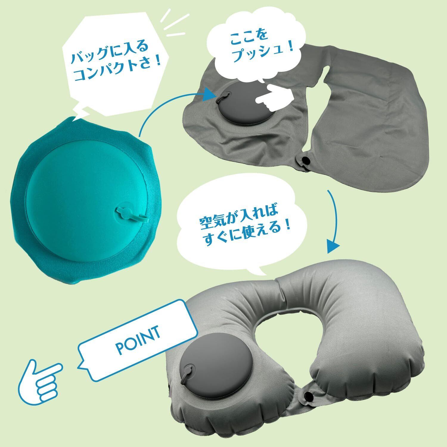 ネックピロー U型まくら 首枕 エアーピロー手動プレス式膨らませる 旅行用