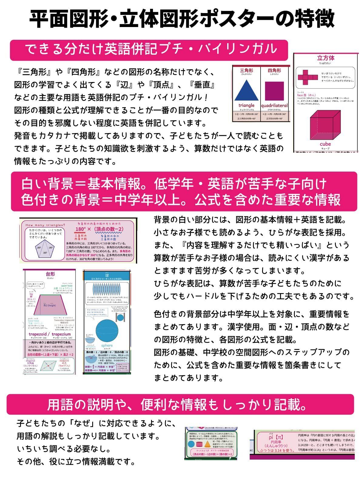 LearnEASY 小学生 1枚でわかる 算数ポスター 5枚セット 割合 分数の計算 平面図形 立体図形 大きい数 中学受験 大きい A2サイズ プチバイリンガル (1 2 3 4 5)