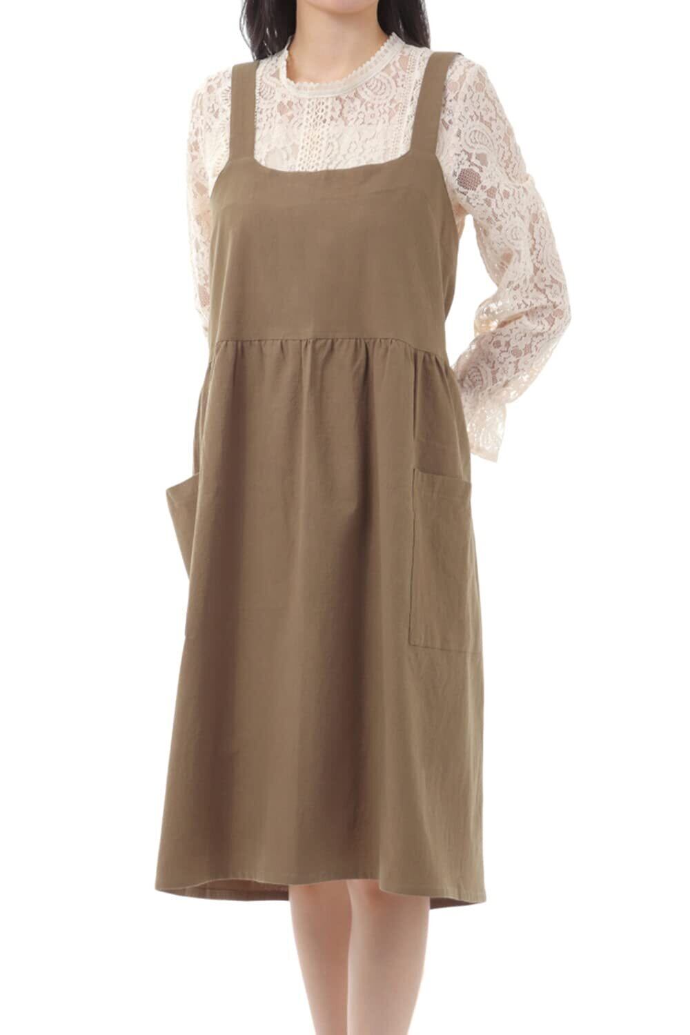 [ヤヌークゴラ] エプロン シンプル カフェエプロン 北欧風 レディース ナチュラル えぷろん かぶり バッククロスエプロン ポケット付 無地 母の日