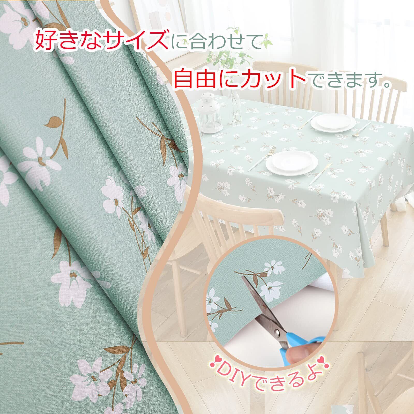 LOHOMEVE テーブルクロス ビニール おしゃれ テーブルカバー 撥水 桌布 正方形 長方形 北欧 汚れ防止 防水 防油 耐熱 pvc製 テーブルマット テーブルランナー グリーン 花柄 140×240CM