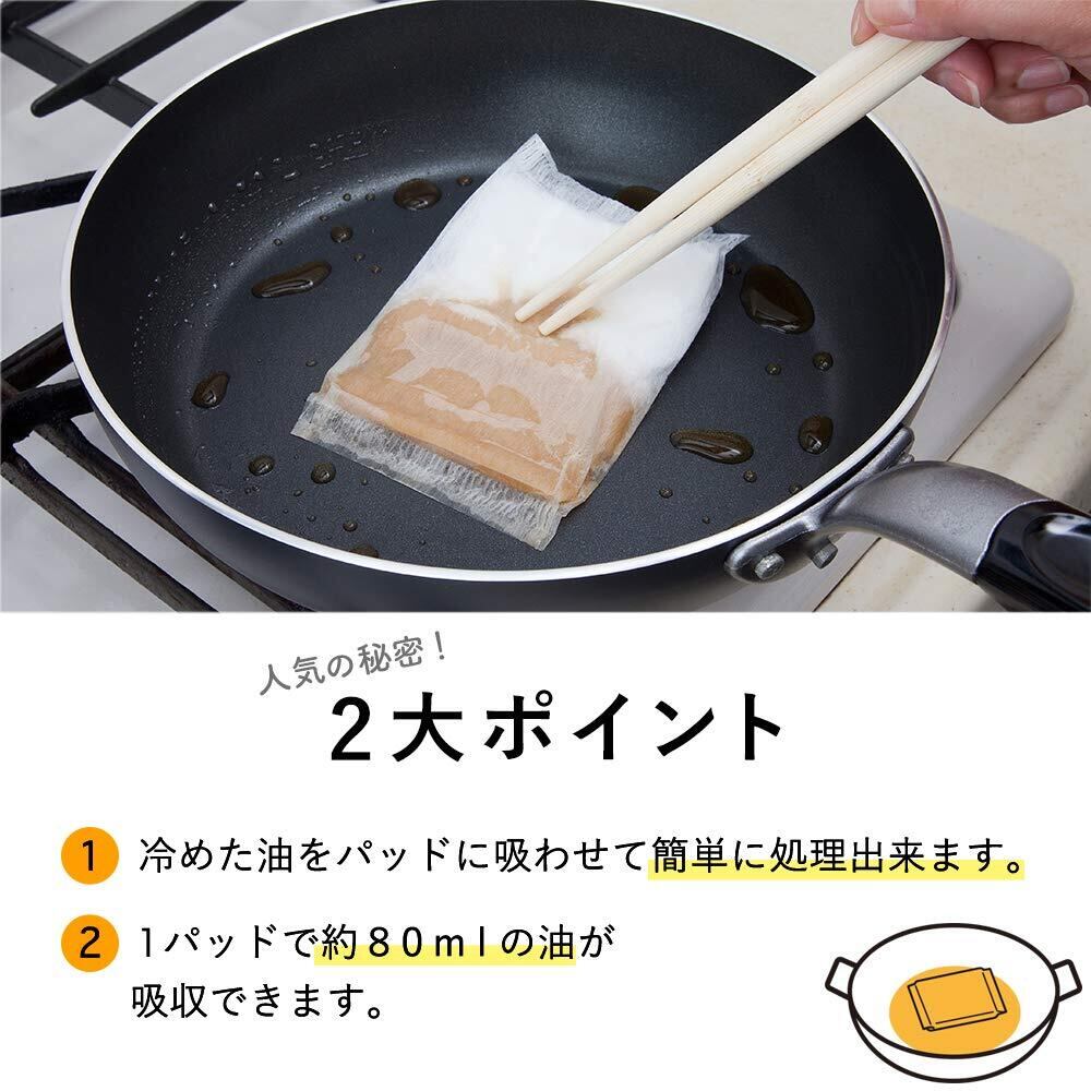 ●冷めた油をパッド(ぱっど)に吸わせて、簡単に処理できます