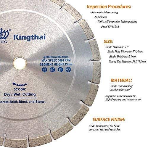 【在庫セール】kingthai General PurposeクラシックWet Dry Cuttingセグメント化されたダイヤモンドブレードforコンクリートブロックMasonry 300mm/12''