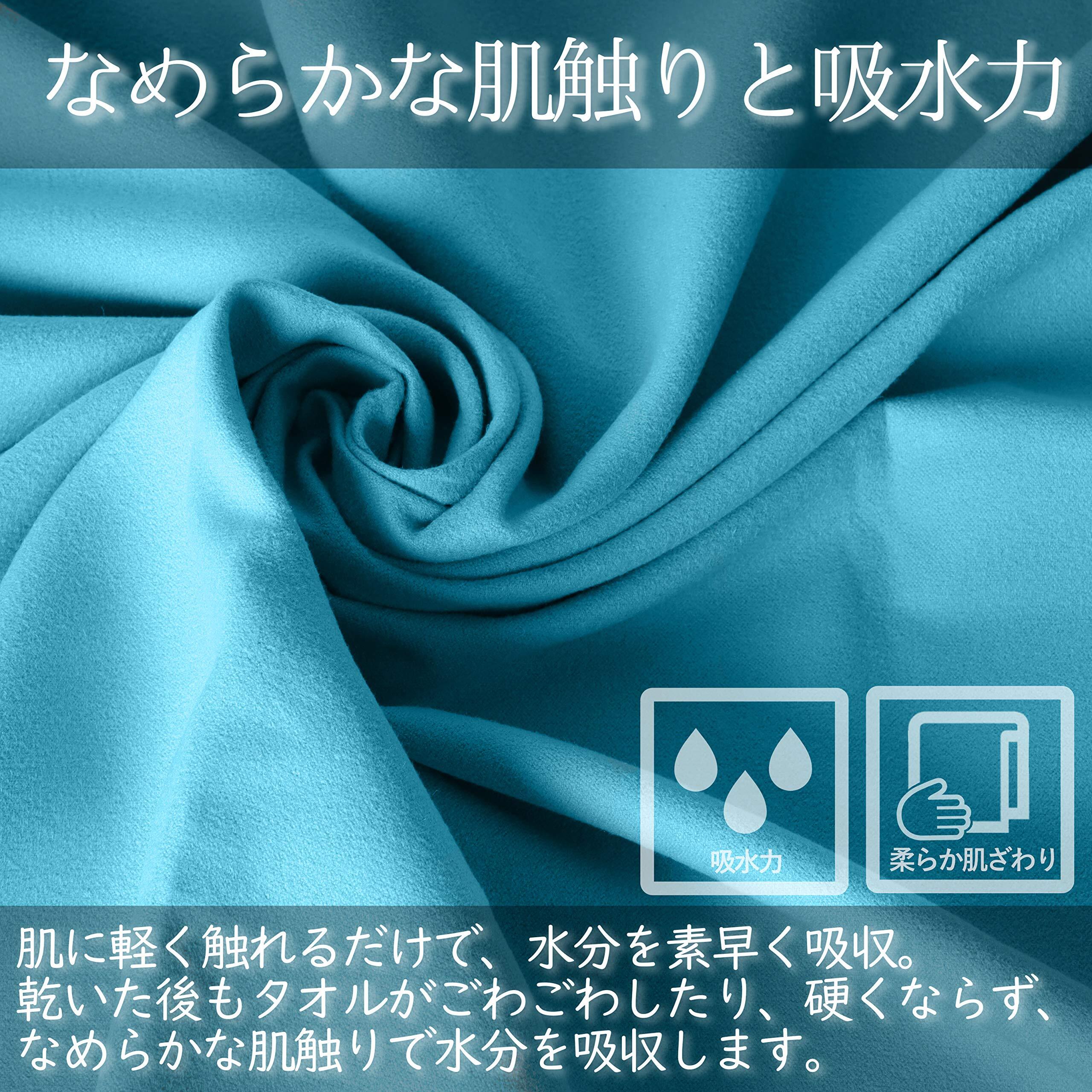 特徴1:【速乾タオル2枚セット】体に巻くのに十分な70×140cmのバスタオルと使い勝手抜群の30×98.5cmのマフラータオルがセットに!旅行に便利な薄型収納ポーチ付。特徴2:なめらかな肌触りと吸水力・優れた速乾性と耐久性