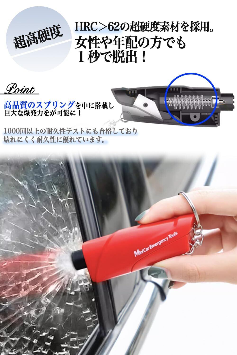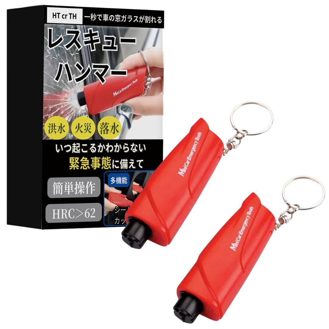 【数量限定】HT cr TH レスキューハンマー 緊急脱出ハンマー (1秒で 車 の 窓ガラスが割れる ハンマー) シートベルトカッター (赤2個)