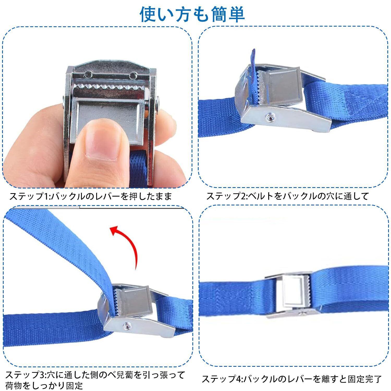 【仕様】材質:ベルト/ポリプロピレン、カムバックル/亜鉛合金、幅:50mm 長さ:2.5m 2本セット 破断荷重:200kg