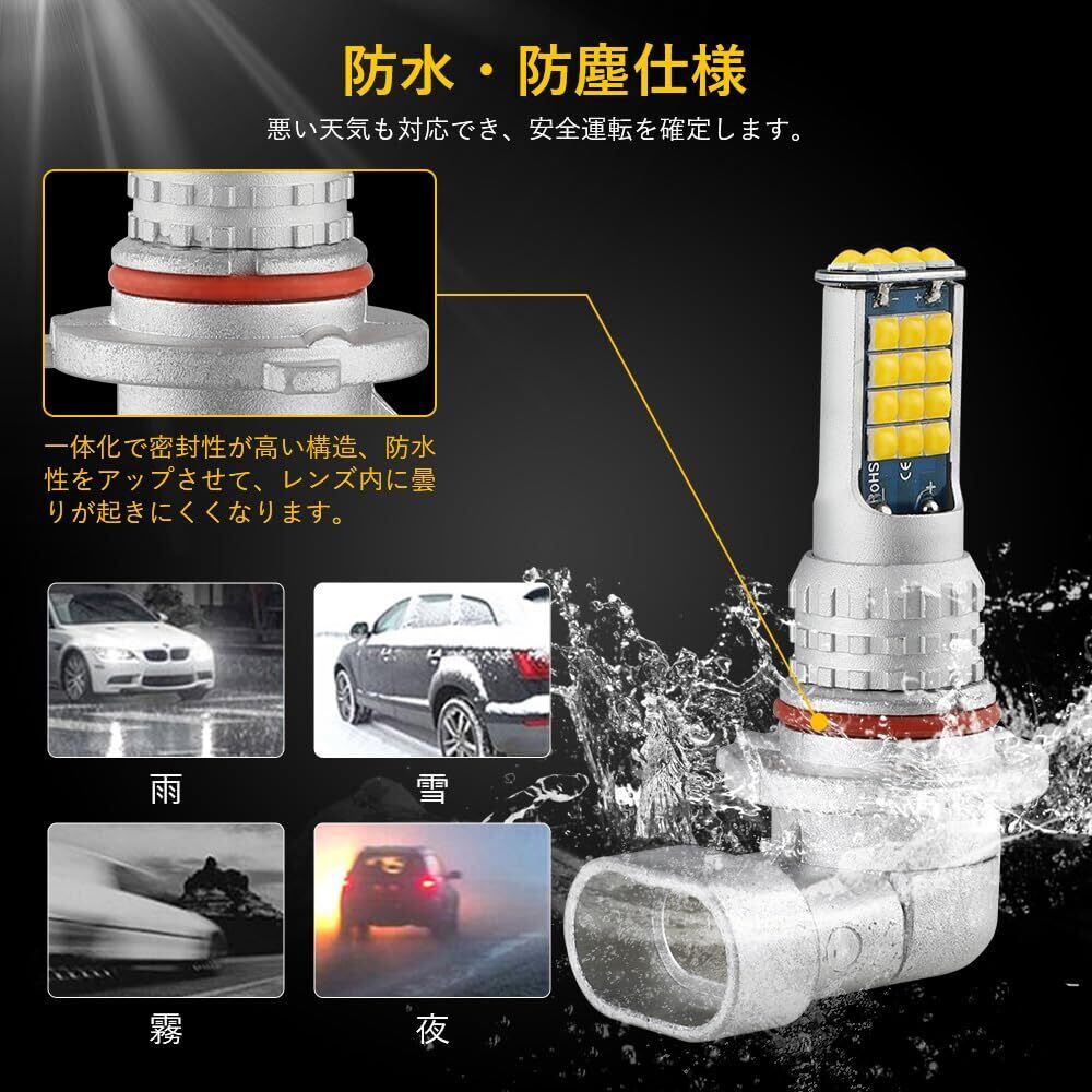【全面発光360°・視認性抜群】 LEDフォグランプは30個の高輝度な3030 SMD LEDチップを搭載し、均一·高効率の綺麗な色で発光し、超輝度で普通のLEDチップと比べ発光率はアップし、集光量が高まります。ハロゲンバルブに比べ鮮やかなレモン黄色は地面をしっかりと照らすので、雨や霧など悪天候でも見やすい色です。通常のハロゲンより省エネルギーの上で、LEDフォグランプの光源面積が広く、光が360°に拡散して、視野範囲最大限に増やせ、夜間の走行が非常に楽になり、夜のドライブの安心感が高まり、安全性がアップします。