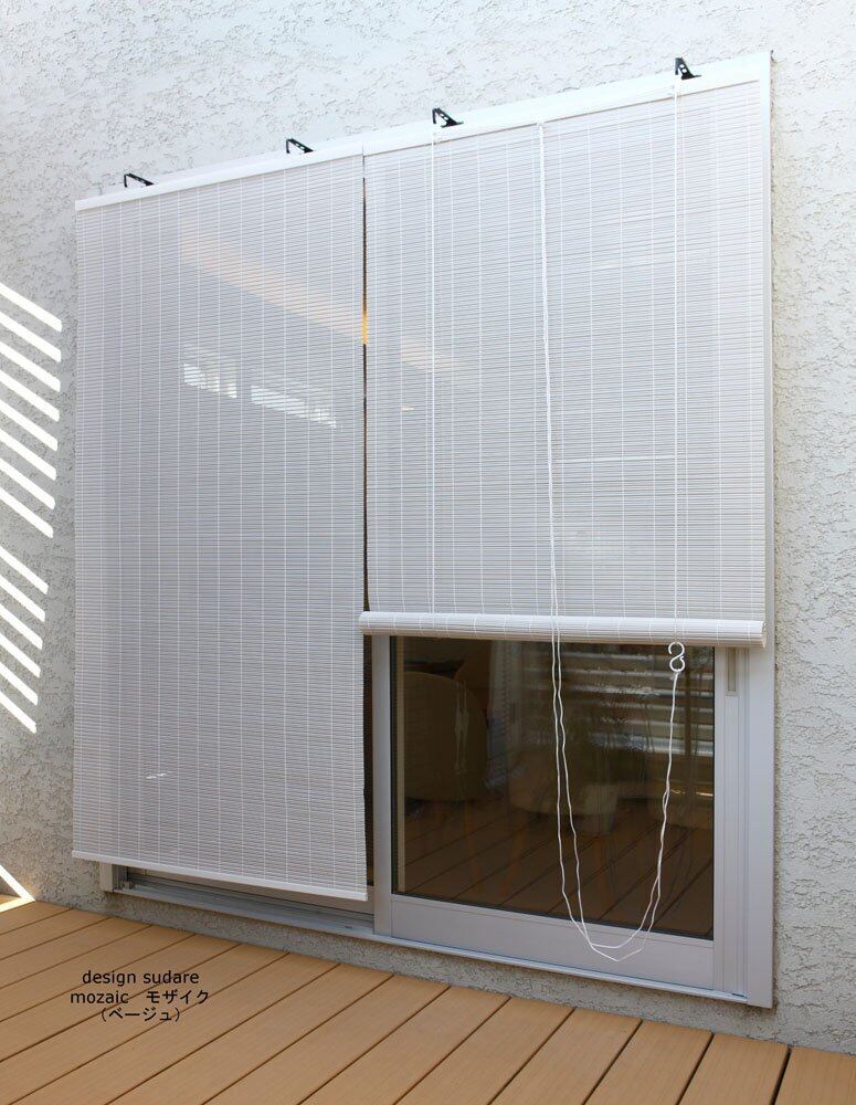 風を通して、風景を取り入れる。そんな日本の家にピッタリなすだれです。(br)適度な遮光性と、通気性。(br)さわやかなナチュラルカラーのすだれです。(br)暗くなり過ぎない、適度な日よけをお探しのお客様に最適です。(br)屋内でも、屋外でも使用できます。(br)きれいが長持ちのプラスチック製です。(br)適度な重量で、女性でも取付簡単。(br)白基調の壁材との相性は抜群です。(br)ニュアンスのあるカラーが特徴のデザインすだれです。