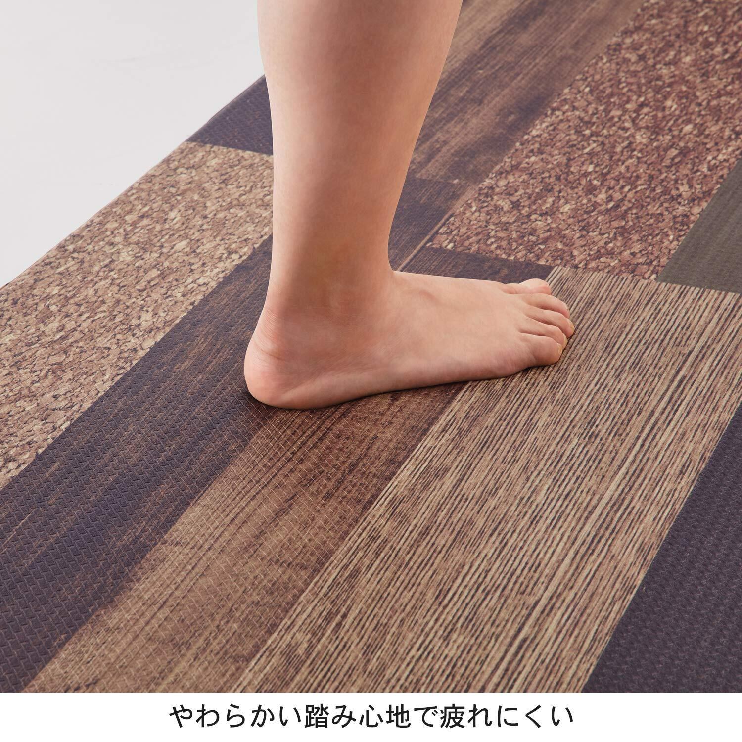 ベストコ キッチンマット ミックスウッド ダーク 45×220cm さらっと拭ける ぷにぷに触感 ND-9872