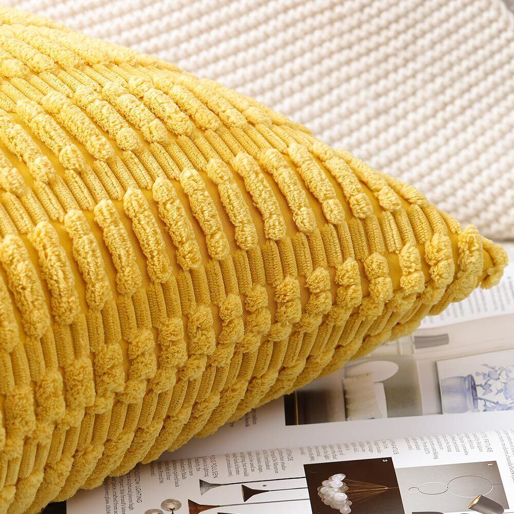 Madizz クッションカバー 2枚セット 柔らかい コーデュロイ 装飾的な 枕カバー 贅沢 スタイル クッションケース ソファ用 寝室用 65 x 65 cm イエロー