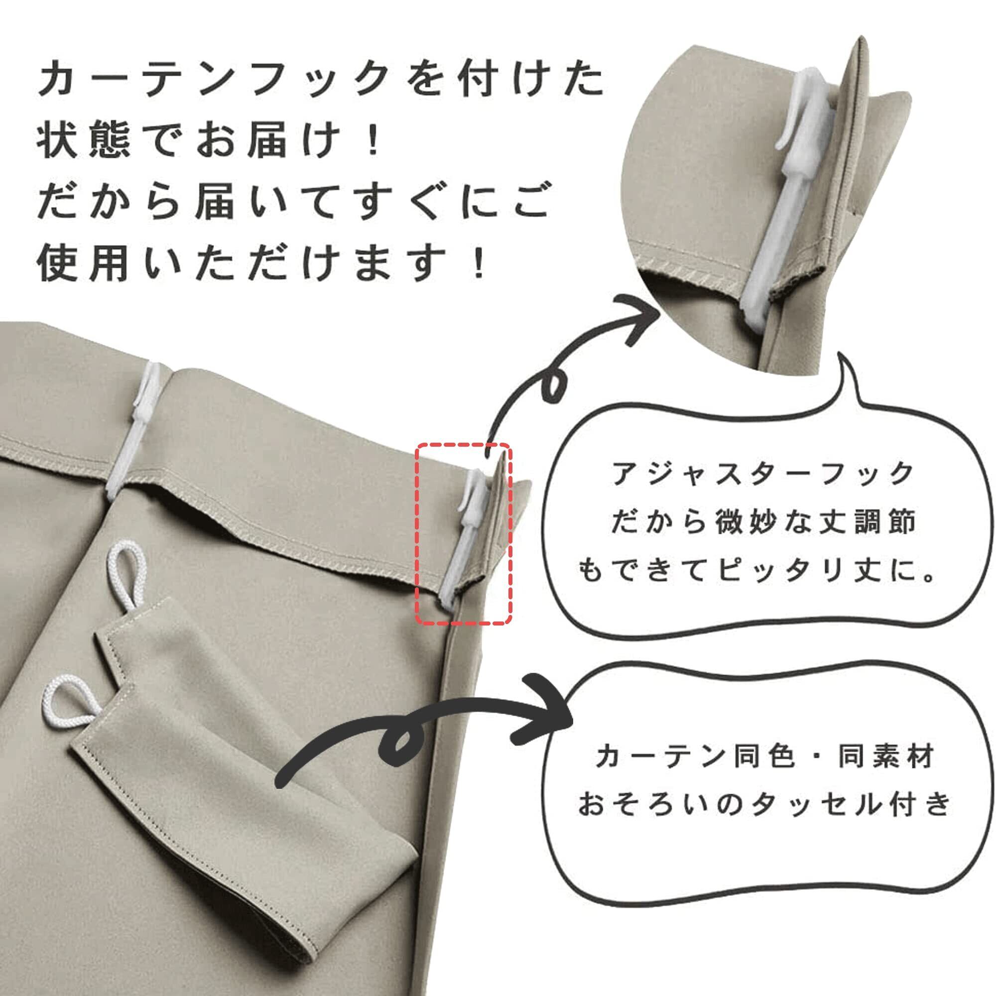 PONY DANCEの遮光カーテンについてセット内容遮光カーテン1枚 同色タッセル1枚 アジャスターフックもついております組成ポリエステル100%ミルクのような生地で丁寧に作られ、心地よい手触り、落ち着いたムードをつくる上品で素敵なドレープカーテンです1級遮光【三重織り生地】生地の中に黒い糸を織り込むことで、遮光効果を高めています高密度の厚い生地で、断熱・遮音・保温性に高くなり、耐久性にも優れてます遮光率99.9%以上だからプライバシーを守りリビングから寝室まで幅広く使えます快適な眠りを床や家具の日焼けを防ぐプライバシー保護同じ等級であっても、色によって遮光の度合いが変わります一般的には、濃い色の方が若干遮光率は高くなる傾向があります遮光性を重視される方は濃い色をお勧めします幅広対応お部屋、キッチンの出入り口に、洗面スペースの間仕切りに...デッドスペースを生かして洋服の収納などに...また、普通にドレープカーテンとしてもピッタリですやっぱりシンプルがいい無地の生地でお部屋の雰囲気に合わせやすい、快適で優雅な室内環境を提供することができますご注意縫製品ですので、サイズには差が出る場合がございますモニターの設定などにより、実際の商品と色味や素材の見え方が異なる場合がございます