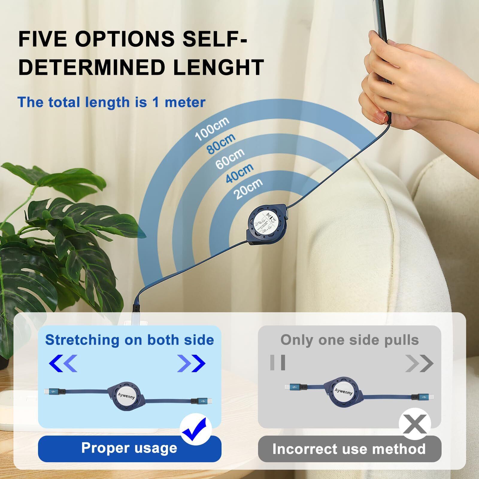 Aywenny USB C充電ケーブル 60W USB C to C 充電ケーブル PD Type C 格納式 高速充電 データ同期コード Phone 15 Plus Pro Max Pad Mini 6 Pro Galaxy S23 (3パック/3.3フィート) (3パック) (青)