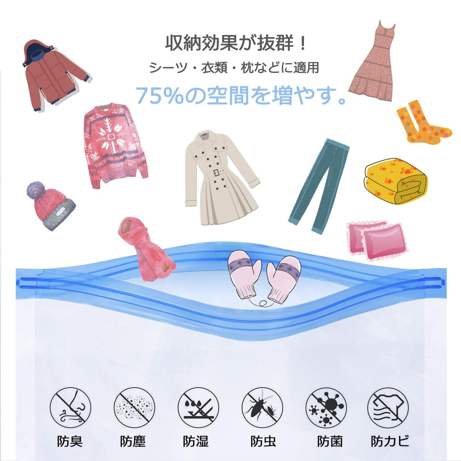 【綺麗に収納】:透明な圧縮袋なので、引っ越し・海外旅行・出張などの時、かさばる服を綺麗に圧縮できます。