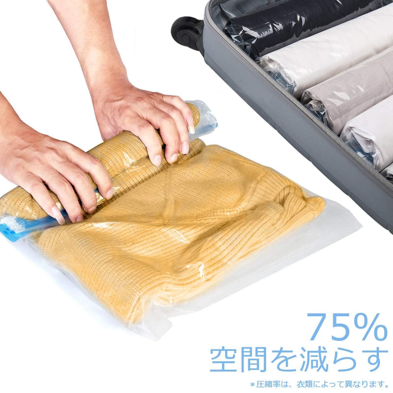 【簡単便利】掃除機不要な圧縮袋で、手で簡単にクルクル巻けるから、時間かかりません。旅行、帰省や出張などのお供に、普段使いもおすすめです。