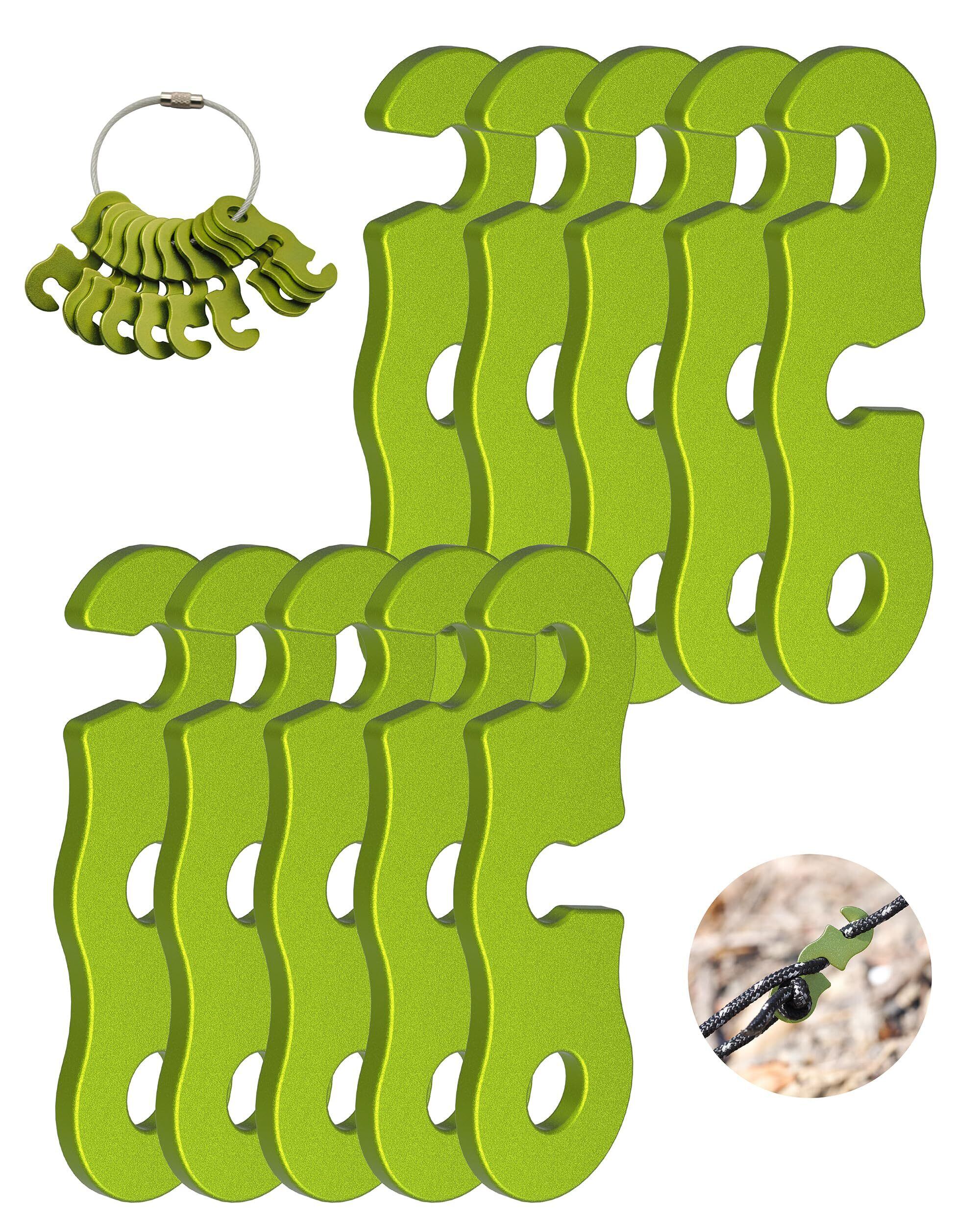 自在金具 10個入 アルミ合金ロープテンショナーキャンプテントガイラインコードアジャスターキャンプ用品、ハイキング、リュックサック用キャンプギア超軽量テントステークスガイラインテンショナーテントコード (くさいろ10個入)