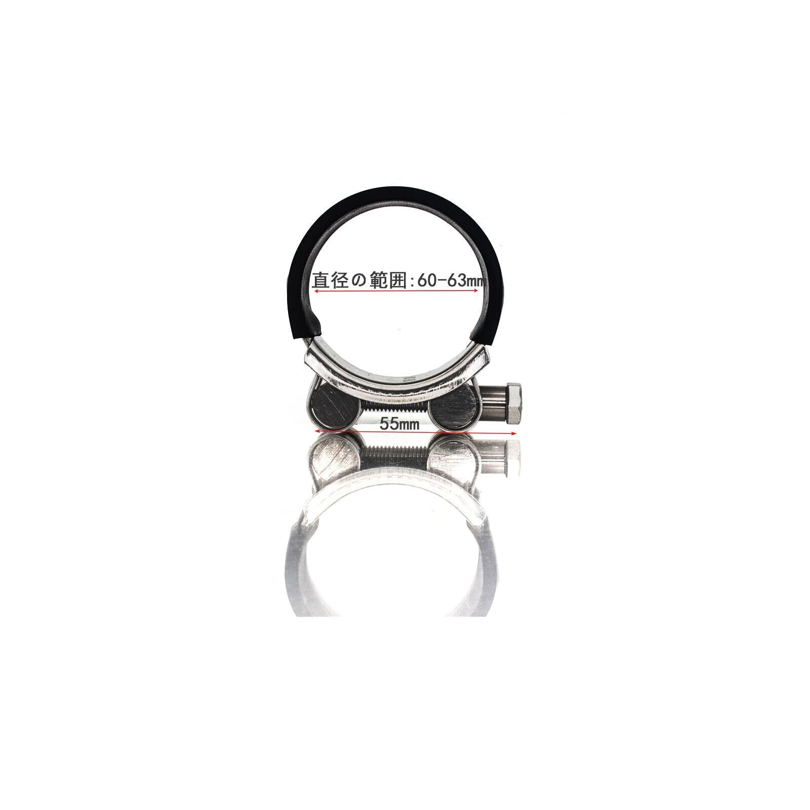 【マフラーバンド】材質:304ステンレス、カラー:シルバー、締め付け範囲:60-63mm、形状:円形、個数:2個。