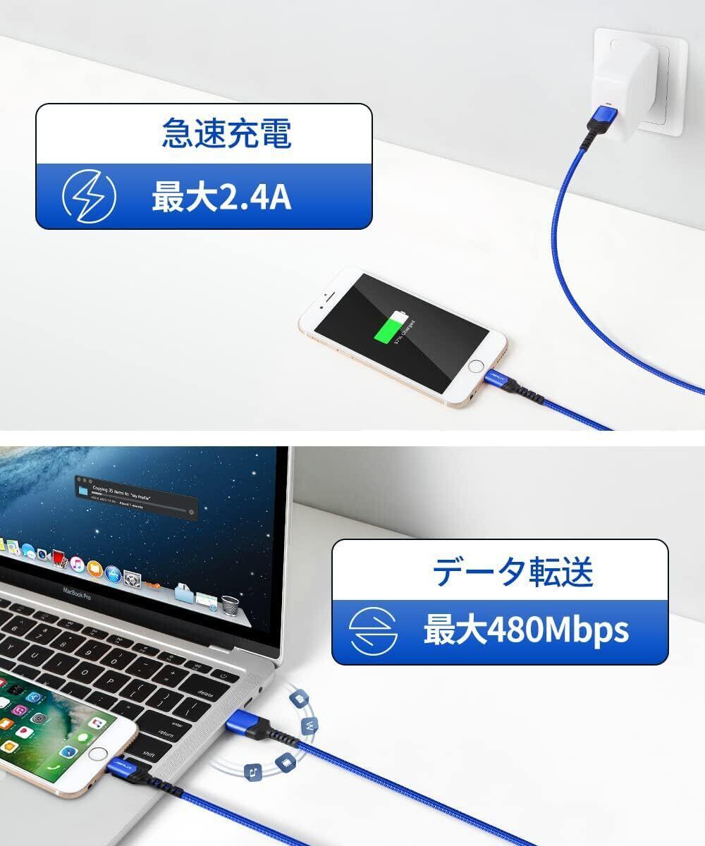 『純正MFi認証』JSAUX Lightning ケーブル「2.4A急速充電·データ転送」ライトニングケーブル 超高耐久 ナイロン編み iPhone 14/13/12/11/Pro Max/Plus/Mini、iPadなどに対応 (1.8M, ブルー)