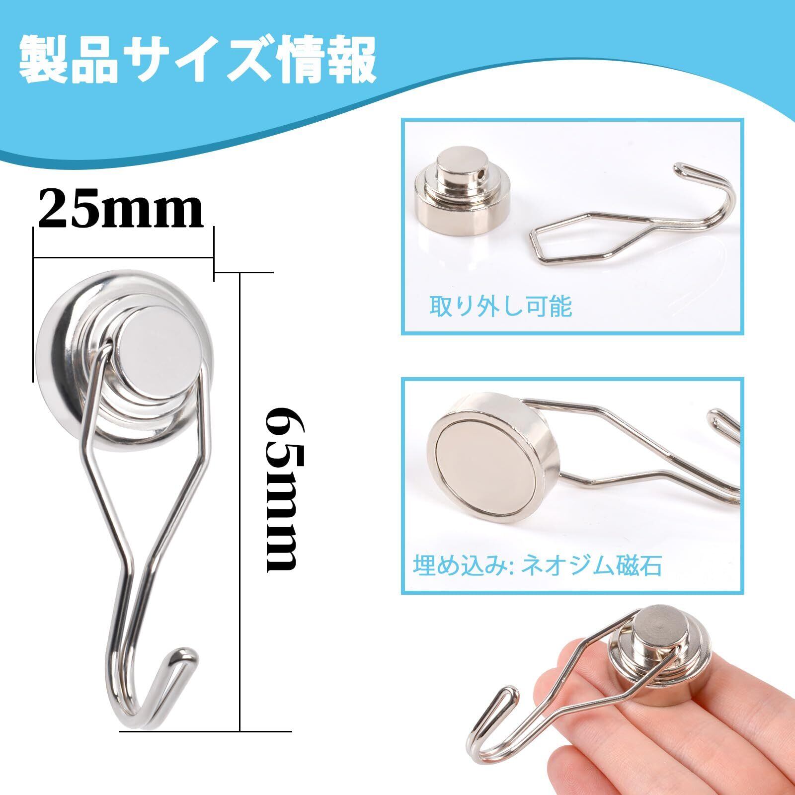 【多用途】この超強力 マグネットフック は、キッチン、オフィス、ガレージ、バスルーム、ジム、ロッカー、クルーズ船などで使用できます。 これらの磁気フックは、休日の装飾を吊るすのにも最適です。