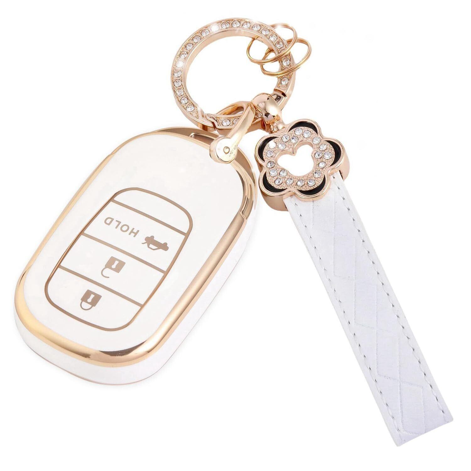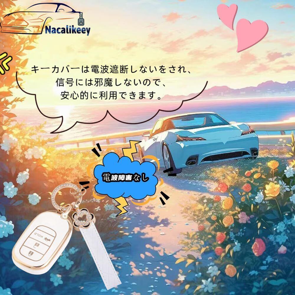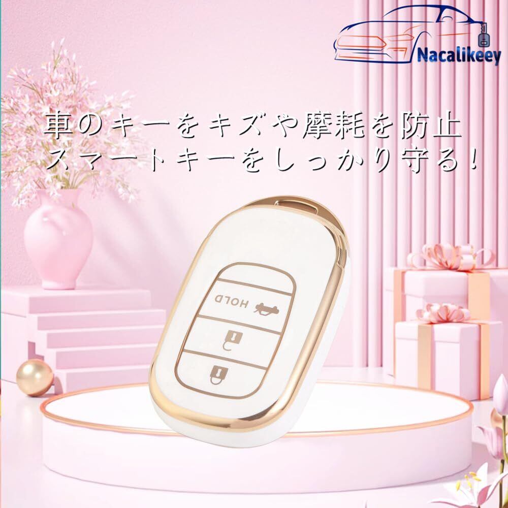 [Nacalikeey] キーケース適合N-BOX カスタム JF5 JF6梅の花 キーケース新型 ステップワゴン キーホルダー適合ホンダ 新型ステップワゴン キーカバー NBOX JF5 JF6 シビック ZR-V ヴェゼル可愛の キーカバー (3ボタン,ホワイト)