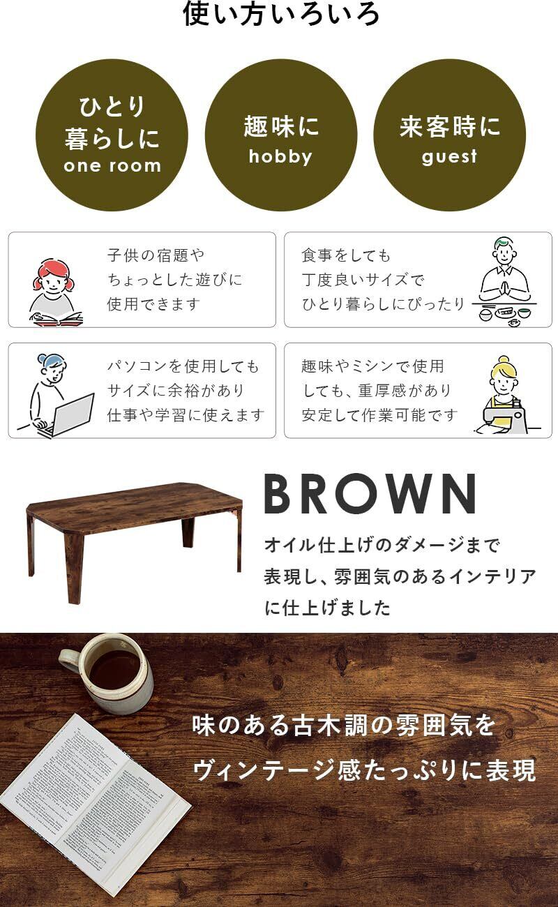 萩原 ローテーブル センターテーブル 机 【木目調天板がスタイリッシュ】 折りたたみ 完成品 軽量 ヴィンテージ リビング ソファテーブル 幅90×奥行50×高さ32 ブラウン MT-6861BR