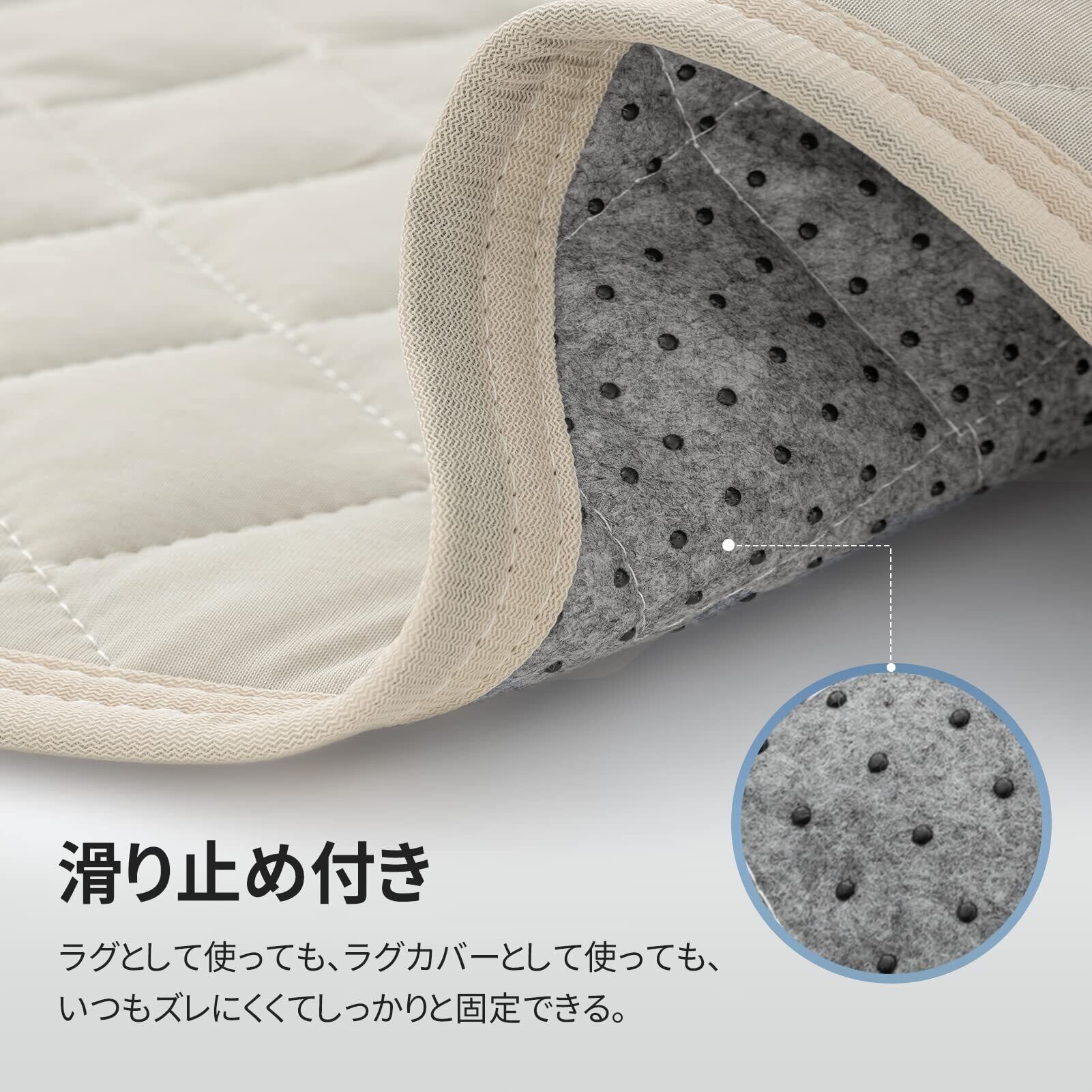 Phantoscope 夏用 ラグマット 冷感キルトラグ ひんやりラグ ラグカバー 接触冷感 夏 ラグマット 190×245cm(約3畳)カーペット ラグ 洗える 防音カーペット 滑り止め カーペット ひんやり 防ダニ 抗菌 防臭 ベージュ