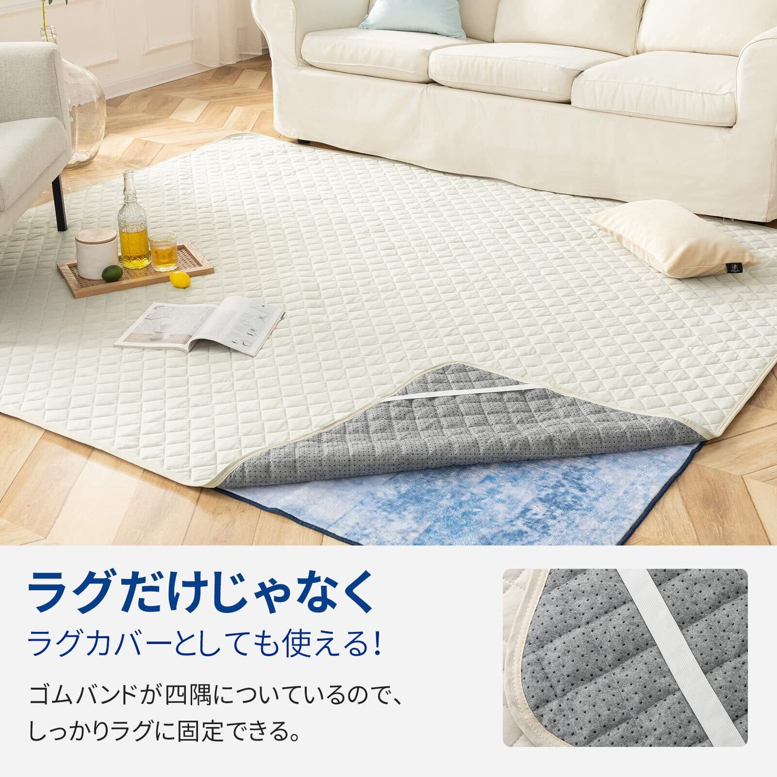 【ラグだけじゃなく、ラグカバーとしても使える!掃除簡単!】おうちで丸洗い可能!本製品にはゴムバンドが四隅についているので、しっかラグに固定できる、汗が出やすい夏場からおうちのラグを守る!お手入れが難しいラグマットを守る!
